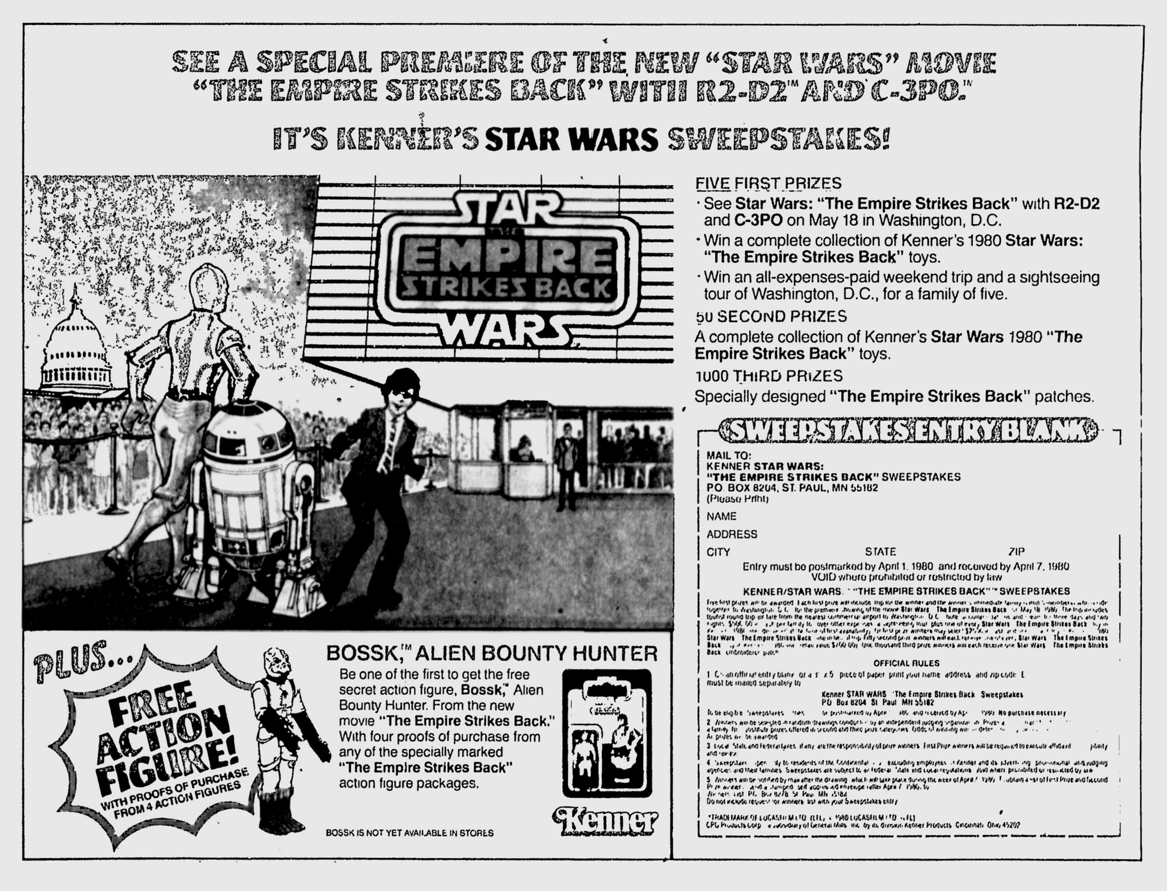 1980 Star Wars Sweepstakes and Kenner’s Bossk Mail-Away Offer