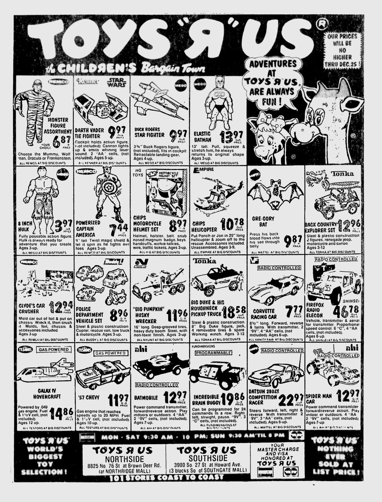 1980 ToysRUs Ad Includes Mego Buck Roger’s Starfighter and Kenner’s Darth Vader TIE Fighter Toys