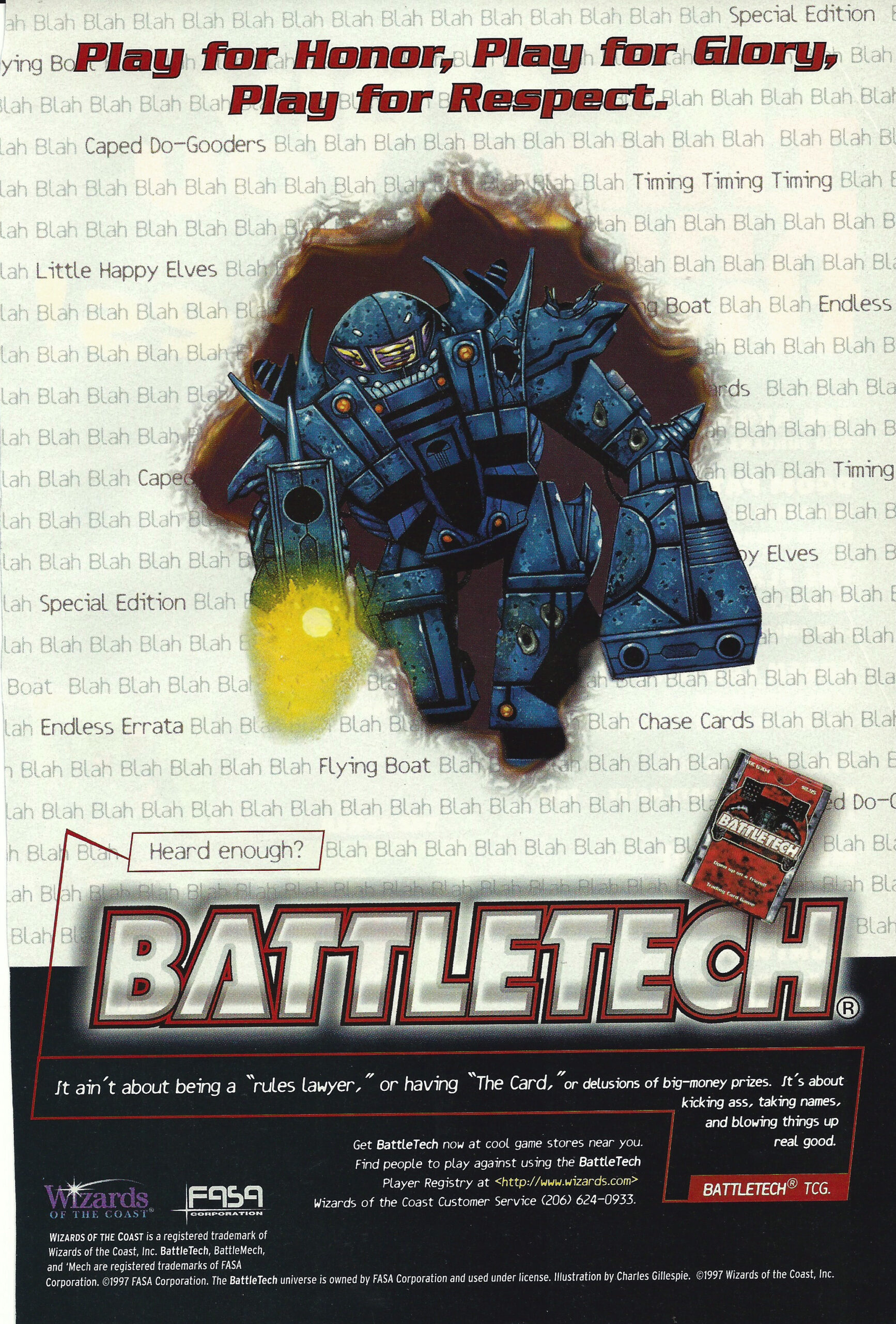 One of the only collectible card games to really catch my wallet, the BattleTech TCG from Wizards of the Coast (Amazon.com search*) was a strong game that was fantastic at first and then slowly lost steam as more and more expansions were released.