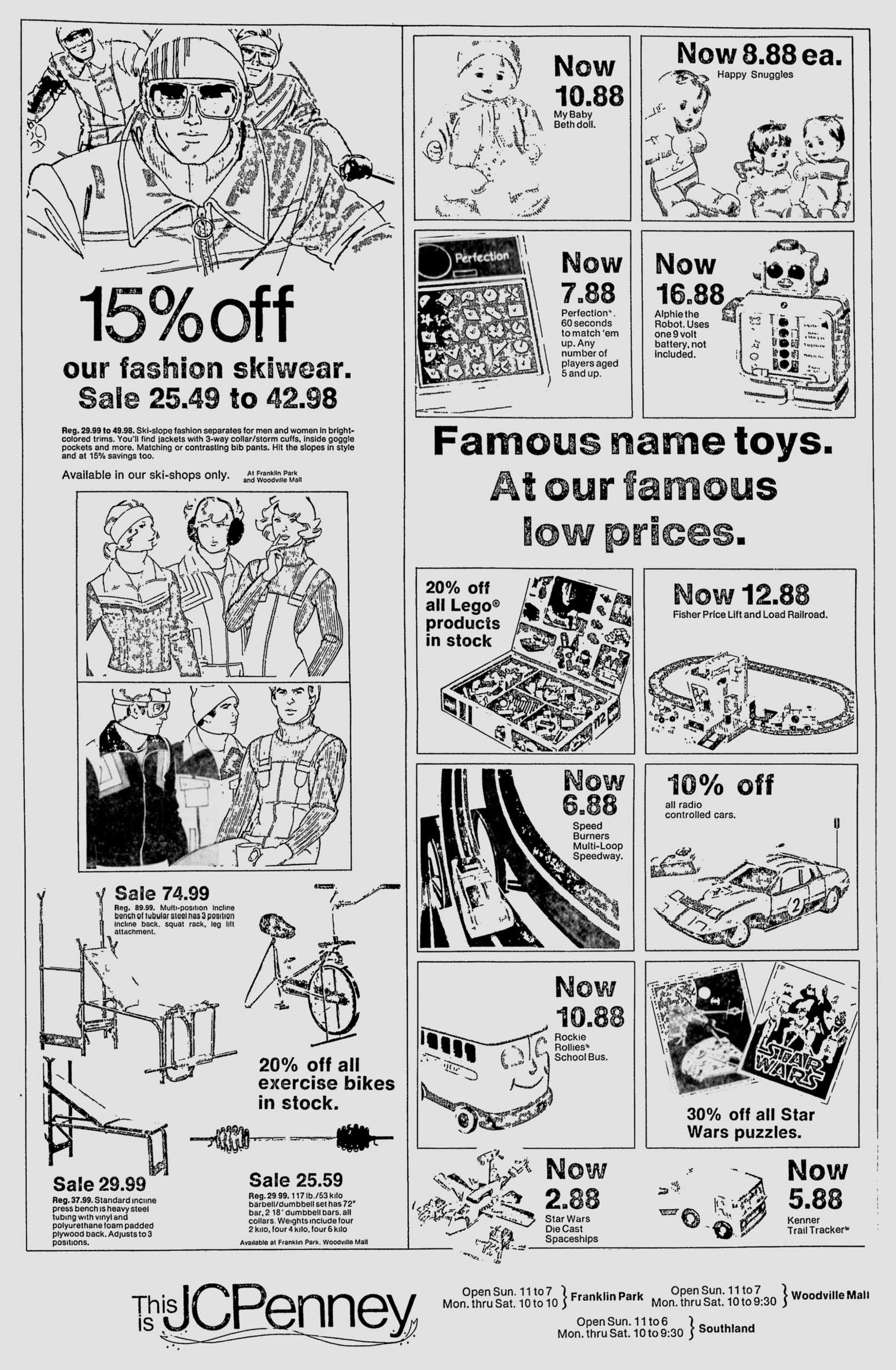 I’ve shared two advertisements for Star Wars puzzles before (here and here, and now that I have also managed to locate this 1978 JCPenny ad for the puzzles I again find myself searching for a deal on a puzzle or two. Not to assemble — I don’t have the patience for that — but as a historical artifact to photograph for addition in a new book.