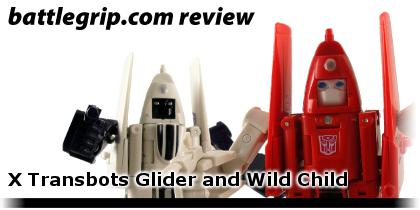 The X Transbots Glider and Wild Child share similar packaging, seen above, that is attractive but now as durable as I would have liked. The front flaps open to reveal the toys in plane mode and the basic design of the box is okay. The biggest problems is that the artwork is low-res in spots and the glue is separating in places; basically, the boxes are falling apart. It’s a good try, but the boxes really aren’t as professionally-designed and produced as I like to see.