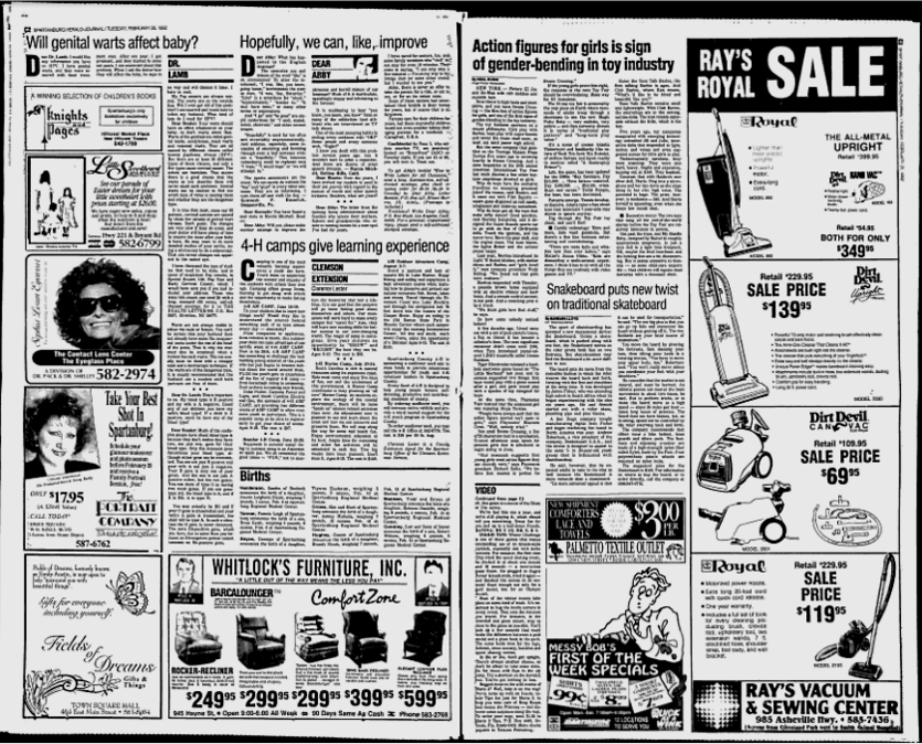 Here we see a 1992 Knight-Ridder Newspaper article by Neal Rubin where the “action figures for girls!” gets some press time. The story opens with Swans Crossing, and immediately the article loses credibility with me when it calls Playmates’ Swans Crossing toys “the first line of action figures for girls, and one of the first signs of gender-blending in the toy industry.”