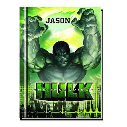 Hulk write thoughts down! The $4 Hulk Journal*, available now at Entertainment Earth, is just one more example of how cool paper products and office supply products can be. Just imagine what dreams you can write down in a blank book . . . and your thoughts will be safe with Hulk guarding the cover.