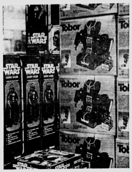 You can read the article here, but the best part of this 1978 Southeast Missourian article about toys for the holidays has to be this shot of Kenner’s large Darth Vader action figure and Schaper’s Tobor electronic robot toy. The sad thing? If given the choice, I’d probably grab Tobor right now. That toy is far more unusual and seventies-specific than the Darth Vader.