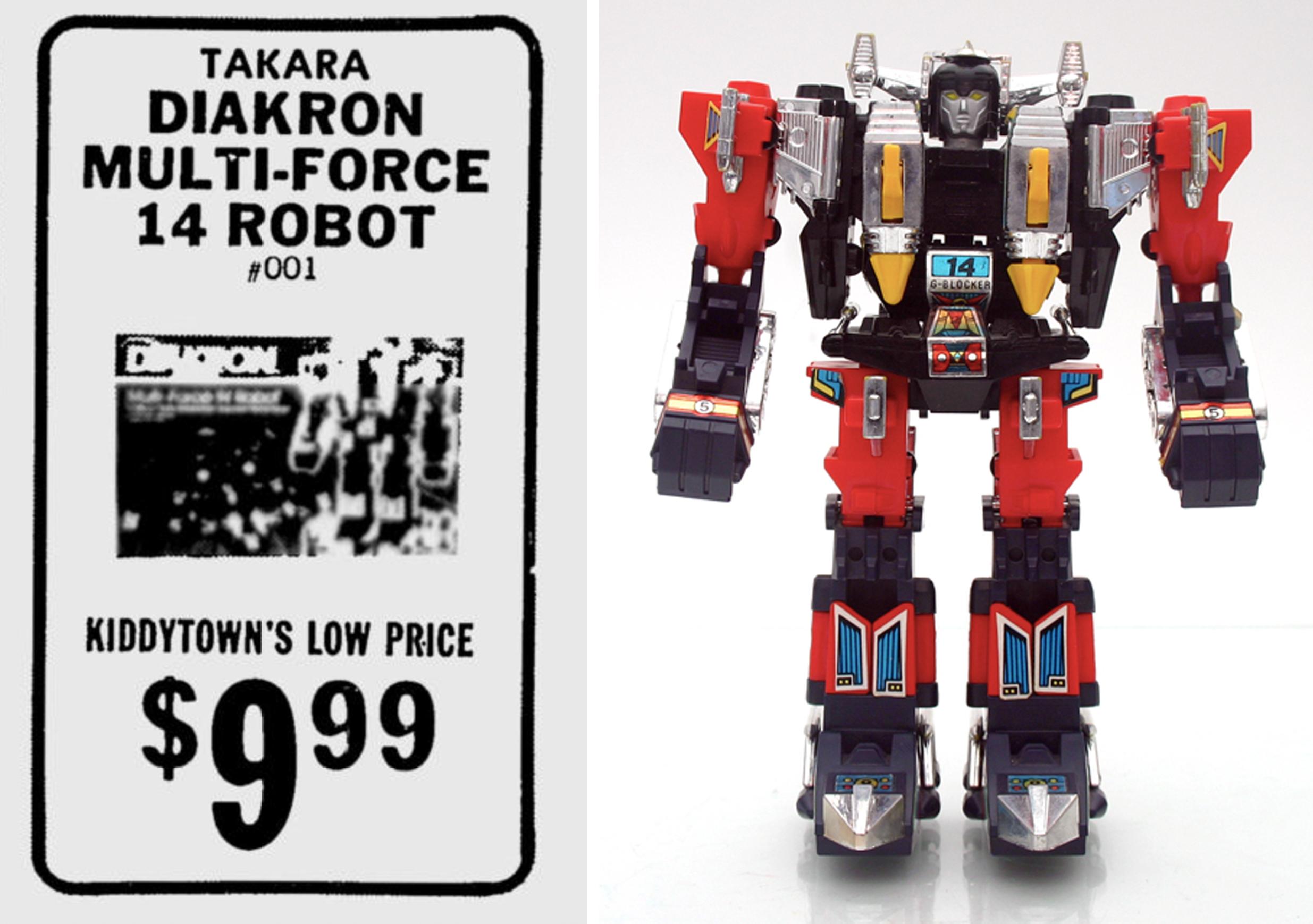 Yesterday’s Star Wars Jedi Tower ad was packed with far more than just Star Wars toys. Takara’s Diakron Multi-Force 14 Robot also appears in the ad, priced at only $10 and just calling out to all of us who want to add some more cheap transforming robot toys of the eighties to our collection.