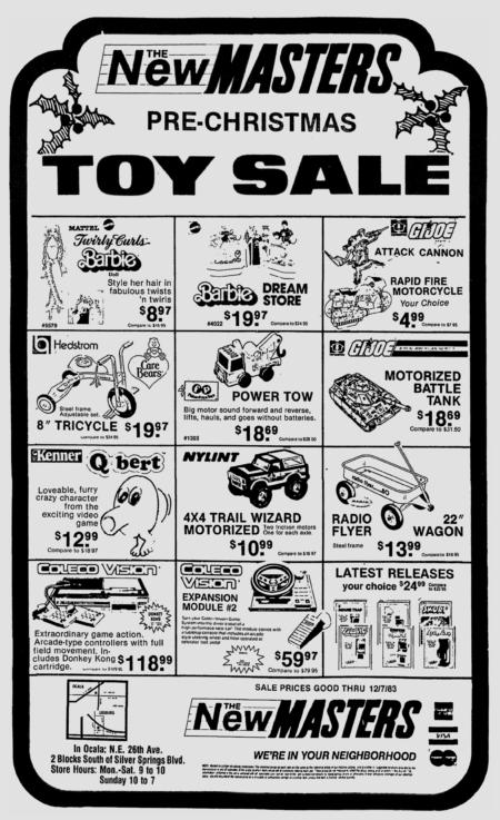 I can’t get enough of classic newspaper ads of the eighties! Take for example this ad for Hasbro’s G.I. Joe toys in 1983. Which one of you can honestly say that seeing the ad — and those prices! — doesn’t make you have that split-second wish for a working time machine?