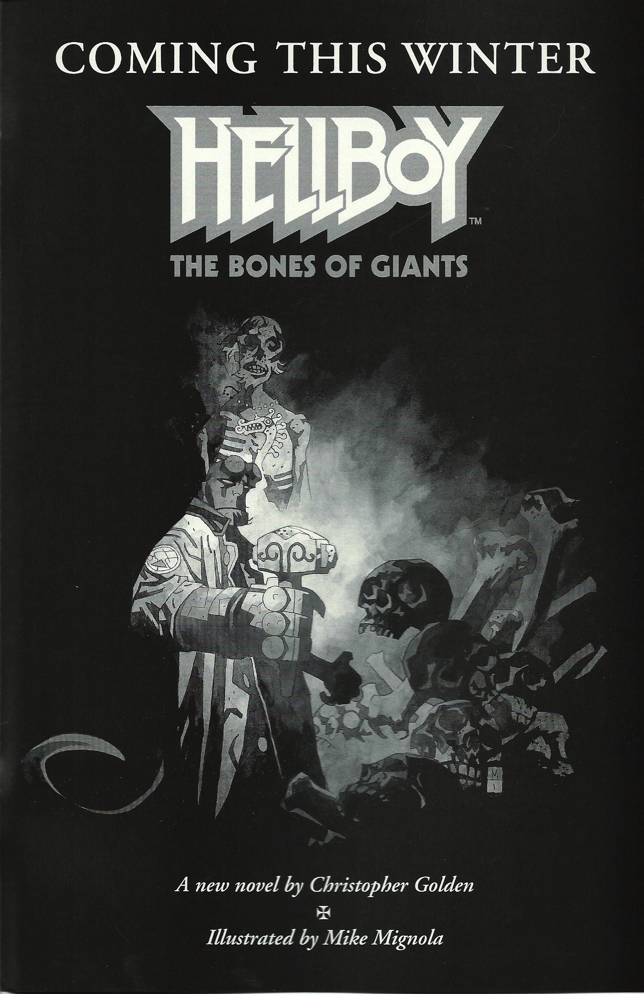 Christopher Golden’s Hellboy: The Bones of Giants* novel was one of those books I remember anxiously watching for way back in 2001. After his work on the short story collections and The Lost Army* I was all set for more Hellboy fiction, and this 2001 ad for the new book was all it took to keep my interest up until the book hit my hands.