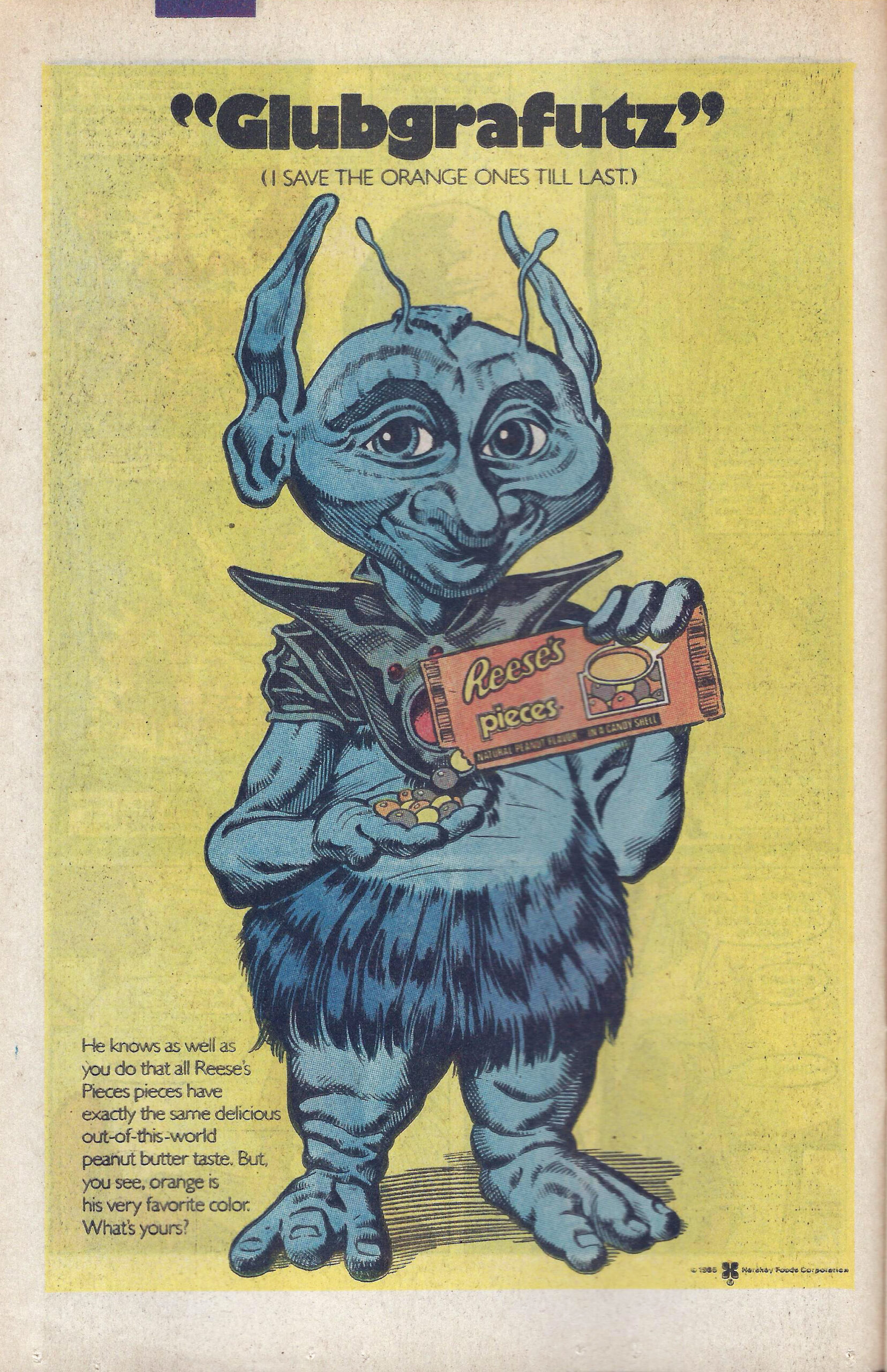 Anyone reading comic books in the mid-eighties should remember this cute Reese’s Pieces ad that appeared in many comic books. Taken from a 1985 issue of The Sword of Solomon Kane, what I find most impressive about the ad is that it wasn’t the only candy ad in the comic. The ads that appear in comics these days don’t seem to have quite as broad a reach of subjects as they once did, which makes me suspect that many comic publishers are charging too much for their ad space these days.