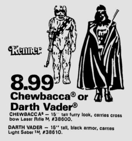 Kenner Large Chewbacca and Darth Vader Action Figures for $8.99/each in 1978