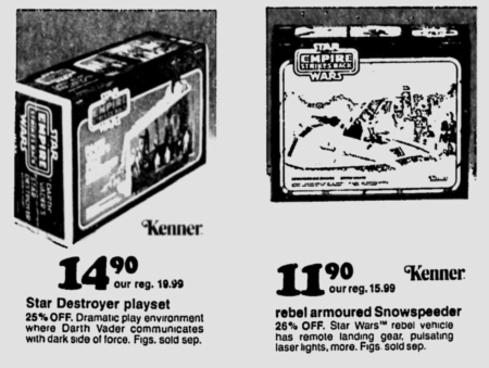 It looks to me more and more like my two books devoted to Star Wars newspaper ads of the seventies and eighties (Collect These Figures and Accessories* and A Galaxy of Action Figure Savings*) will be joined by a third volume next year. After all, this November 30, 1980, newspaper ad is just begging to be collected into a hardcover alongside all of the other ads we have been uncovering. There certainly hasn’t been enough new discoveries to fill a new book, but each ad I find is encouraging and leads me deeper and deeper into the archives.