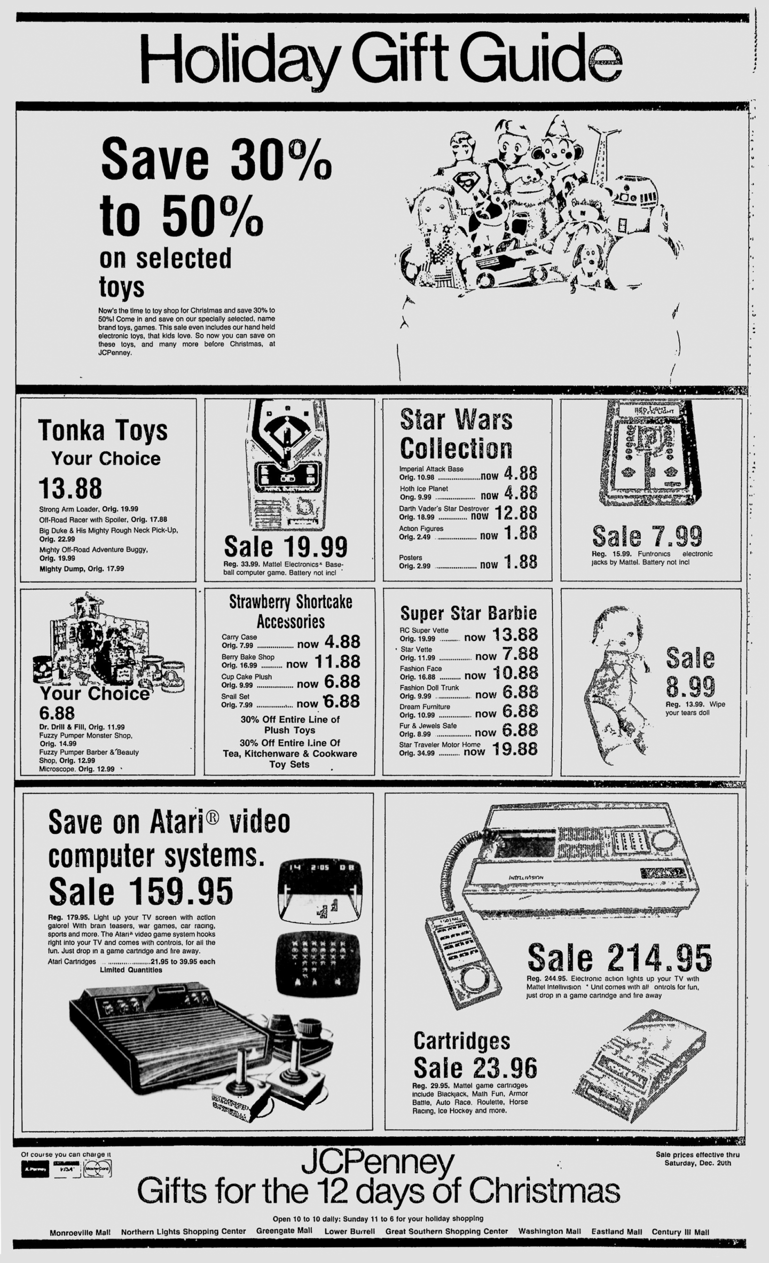 Nope! As proven by this 1980 JCPenny advertisement. Good. I hope there turns out to be an infinite supply of these old ads, that way the entertainment never stops. I know that isn’t possible, but it is still fun to stumble across an unexpected ad and see what the toys sold for decades ago.