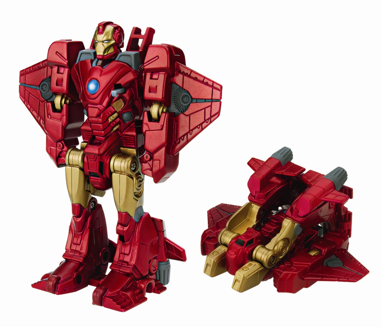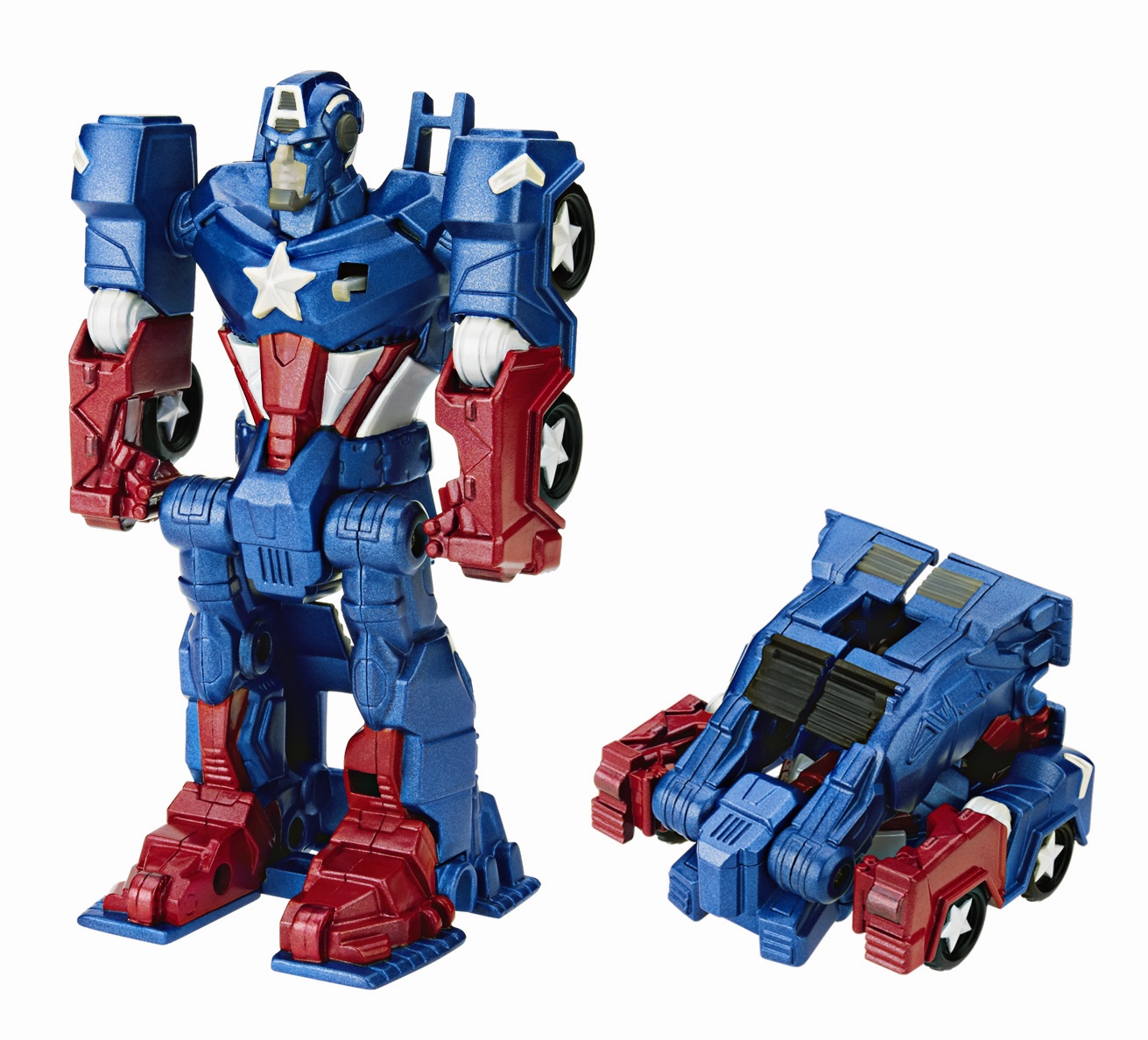 They’re not set for release until this fall, but these upcoming Marvel Flip & Attack Transformers will be mine! At $10/each, these new toys take the classic Transformers Jumpstarters design (see the TFWiki) and adapts the auto-transformation to Captain America, Iron Man, and Hulk. And they look like a lot of fun to me.