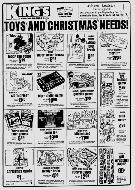 December 11, 1980. Here’s a fun newspaper ad with a bit of an entertaining typo. Featuring the Mego Jokermobile and Mobile Bat Lab trucks (see megomuseum.com), the ad actually calls it the “Rat Lab,” leaving us to ask if Batman is getting a new identity or something.
