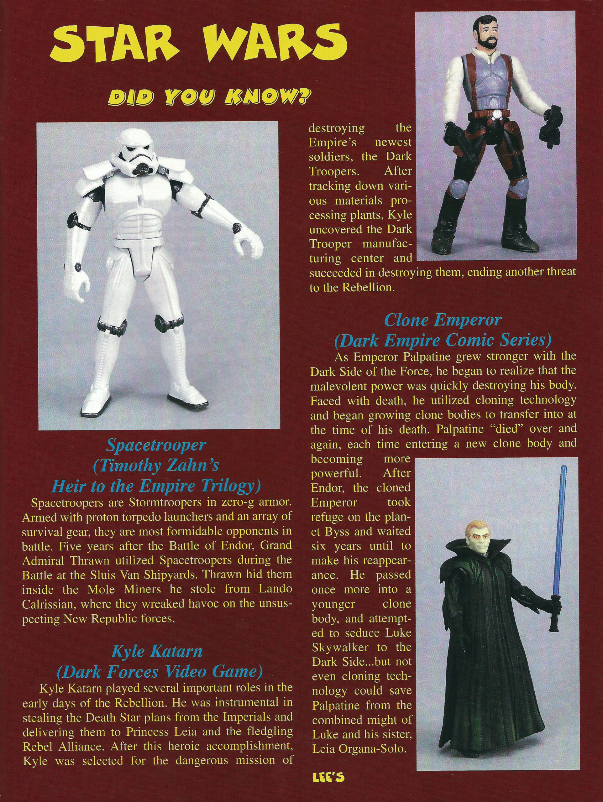 Over the weekend I posted a profiles page from a 1998 issue of Lee’s Action Figure News and Toy Review (Amazon.com search*) that showcased three of the nine 1998 Star Wars Expanded Universe action figures. Awesome read, and today I see no reason not to share another page and continue the look at that 1998 subline of Kenner Star Wars action figures.