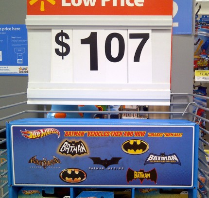 And now, just in time for the new movie, Mattel has released a new Batman Hot Wheels series . . . and at just $1.07/each at Wal-Mart this looks like an excellent time to snag a variety of toys you may desperately need to make your Batman collection much cooler than it already was.
