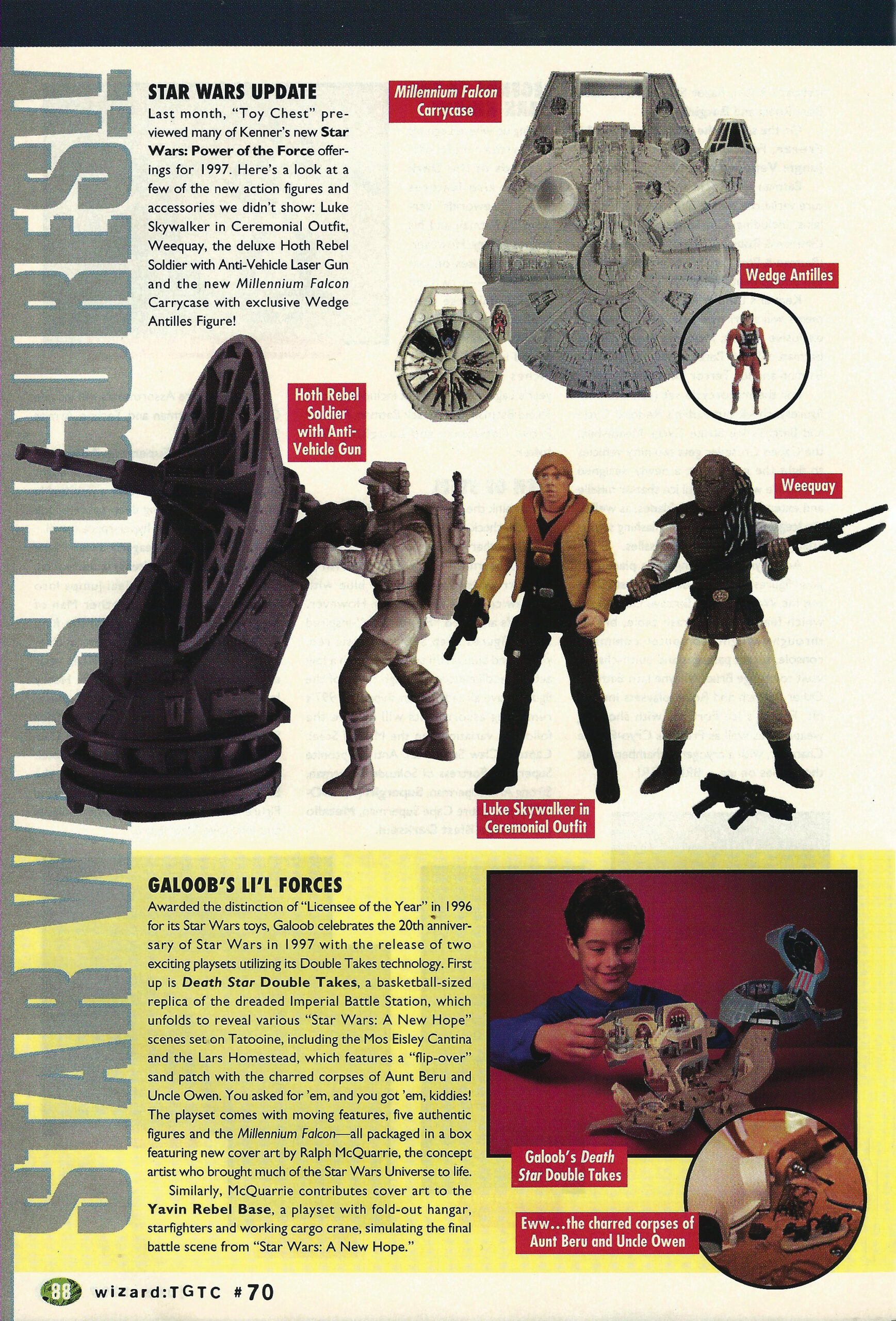 Today’s Wizard scan is from the June, 1997 issue. That Millennium Falcon carrying case wasn’t the greatest, but by packing in a Wedge Antilles action figure Kenner convinced many of us to buy the plastic case. And hey, more Galoob Star Wars toys for us to admire! For more on Galoob and Star Wars in the nineties check out this post from last week.