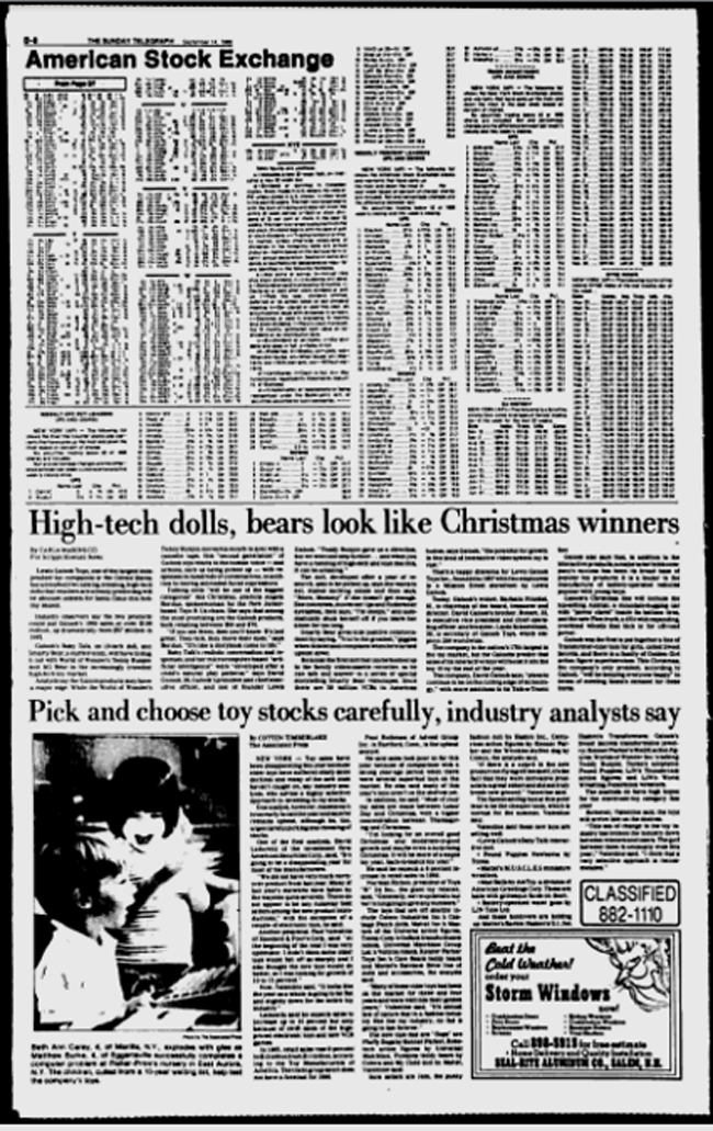 Today we see a 1986 Associated Press article in which Masters of the Universe is listed under “toys that have fallen off sharply.”