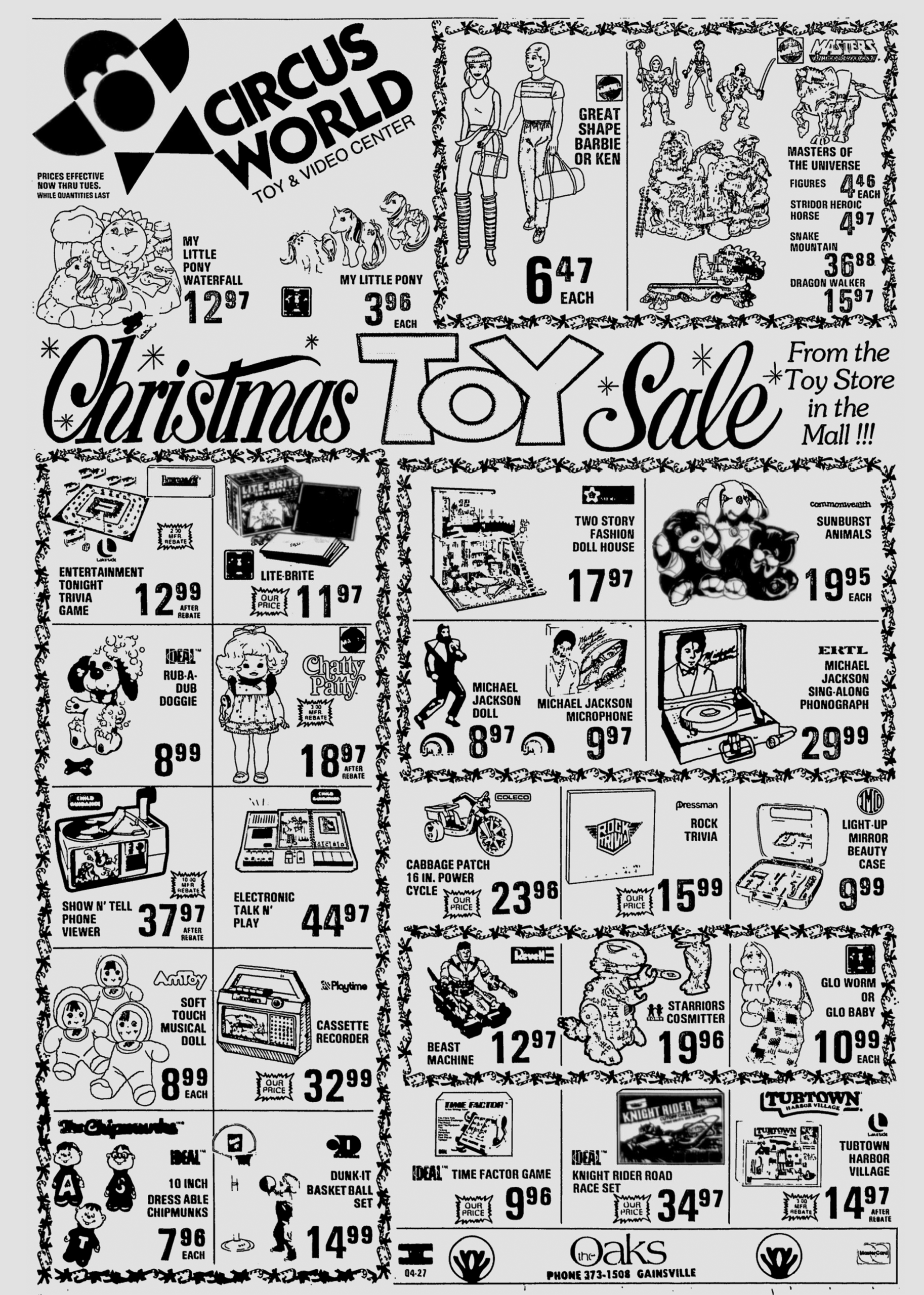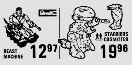Now here’s something we rarely encounter. Revell’s Power Lords action figures are an infrequent discovery, yes, but the Beast Machines action figures in the line are almost never mentioned or seen, making this 1984 Circus World advertisement especially unusual. The Mego Museum forums give us a fantastic look at color pics of the Beast Machines, and this ad tells us exactly what the toys cost when new.