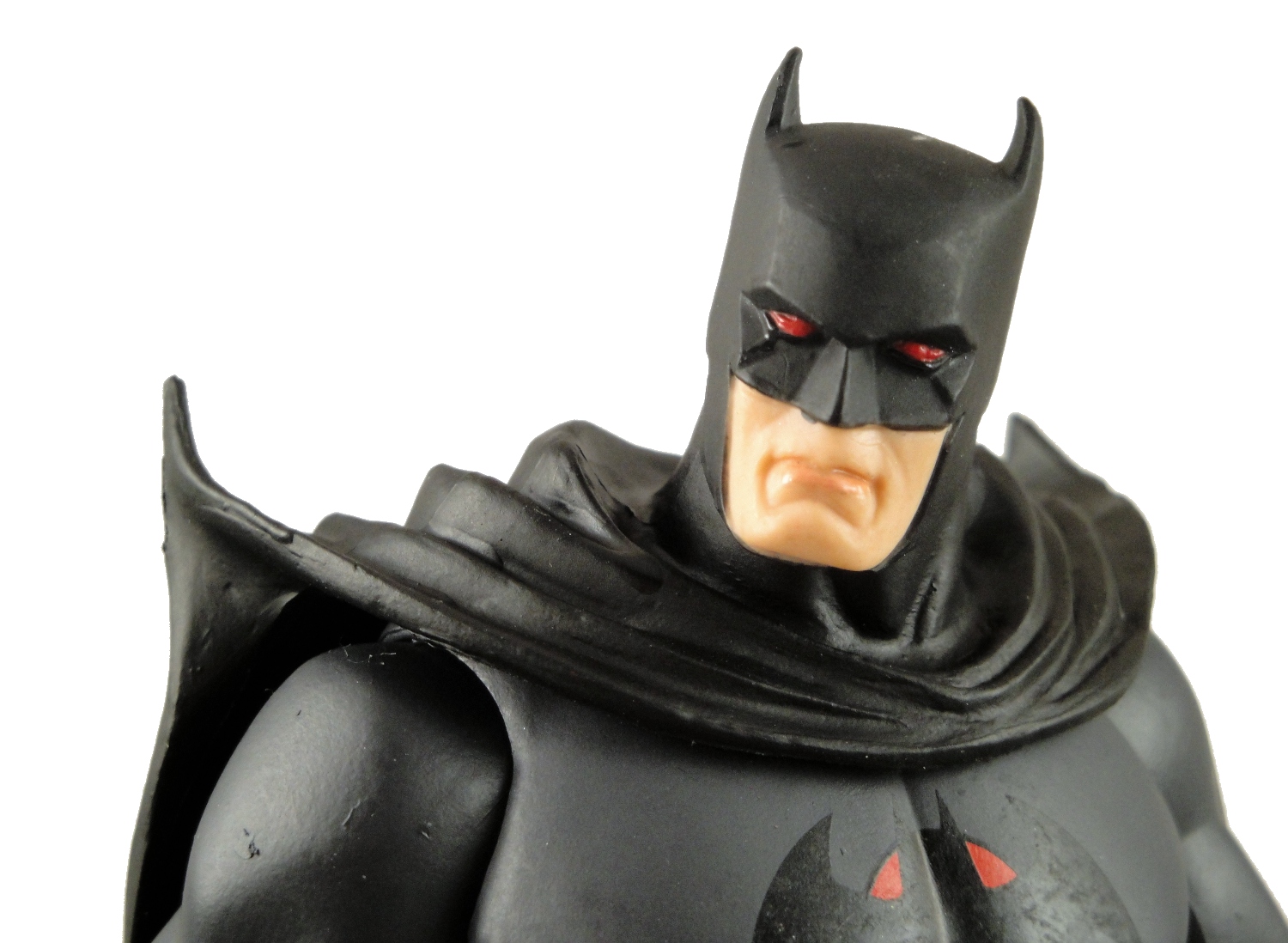 I think it’s an anatomy problem with Batman, with his lower body too short in relation to his upper body and the overall figure having a mushy look. I know “mushy” is an odd word choice for an action figure with a chest and abs like this one, but look at how thick, wide arms join the body and . . . damn. You know what? I really cannot put my finger on what’s wrong but something is just weird about this sculpt. That’s not at all fair to DC Direct or anyone reading this review, but something about this toy’s sculpt bothers me and I can’t figure out exactly what it is.