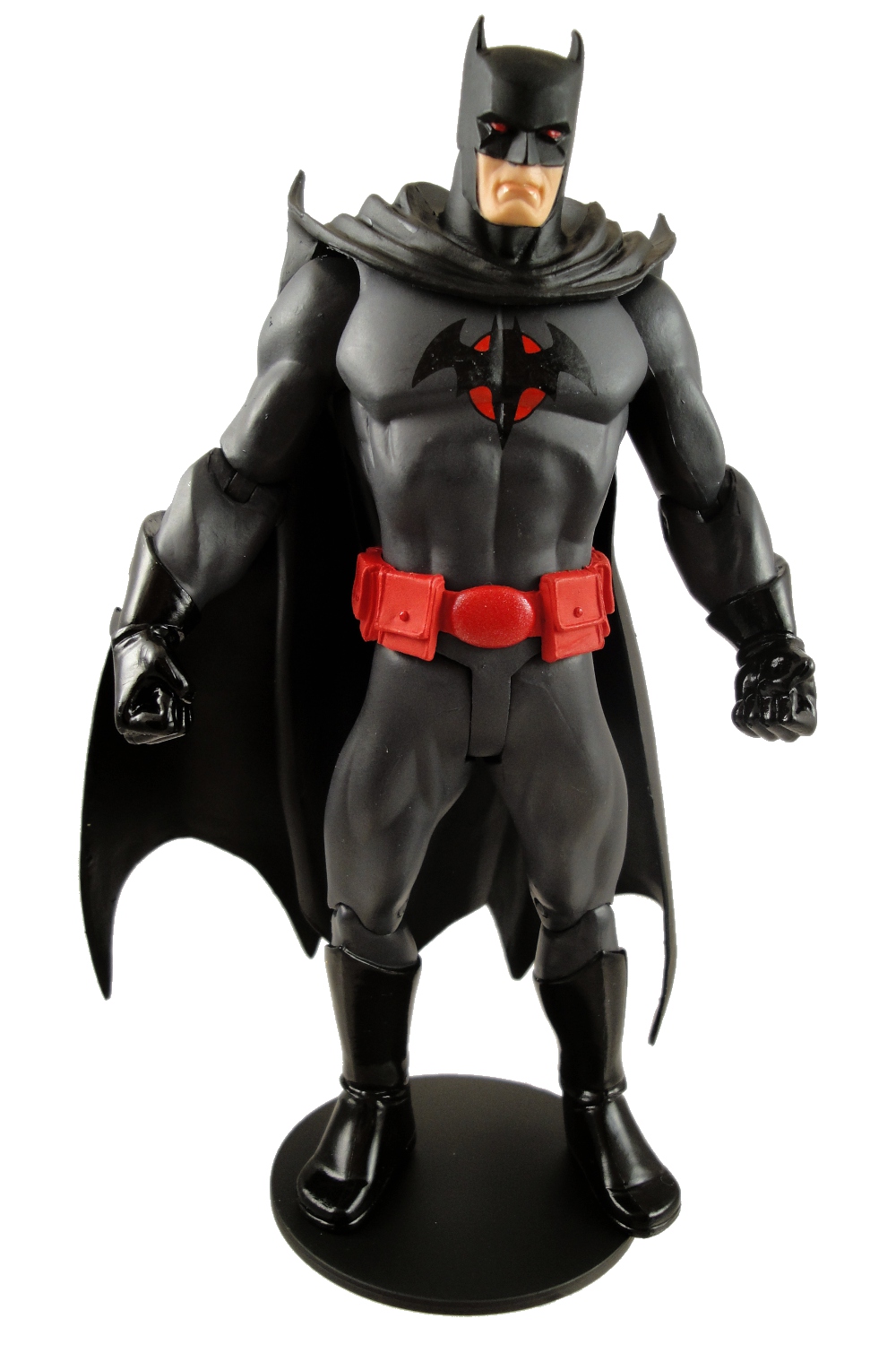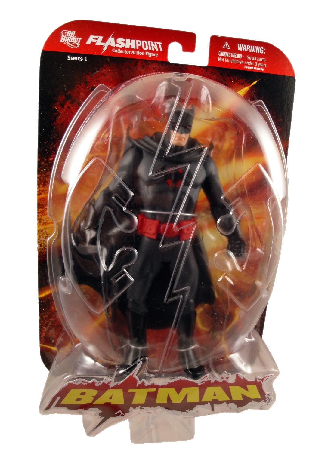 While at the comic store a few days ago (looking at JLA #1) I grabbed this DC Direct Flashpoint Batman* action figure mainly because of the look of the costume. My experience with the DC Direct action figures has been pretty spotty — the Black Lantern Superman (review here) looked neat but is a bad toy while the Killzone action figures (Helghast Assault Infantry review, Helghast Sniper review) are both great works — but the costume looked fun enough that I took a chance on the toy.