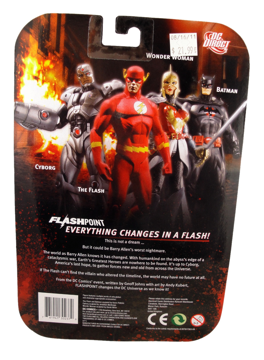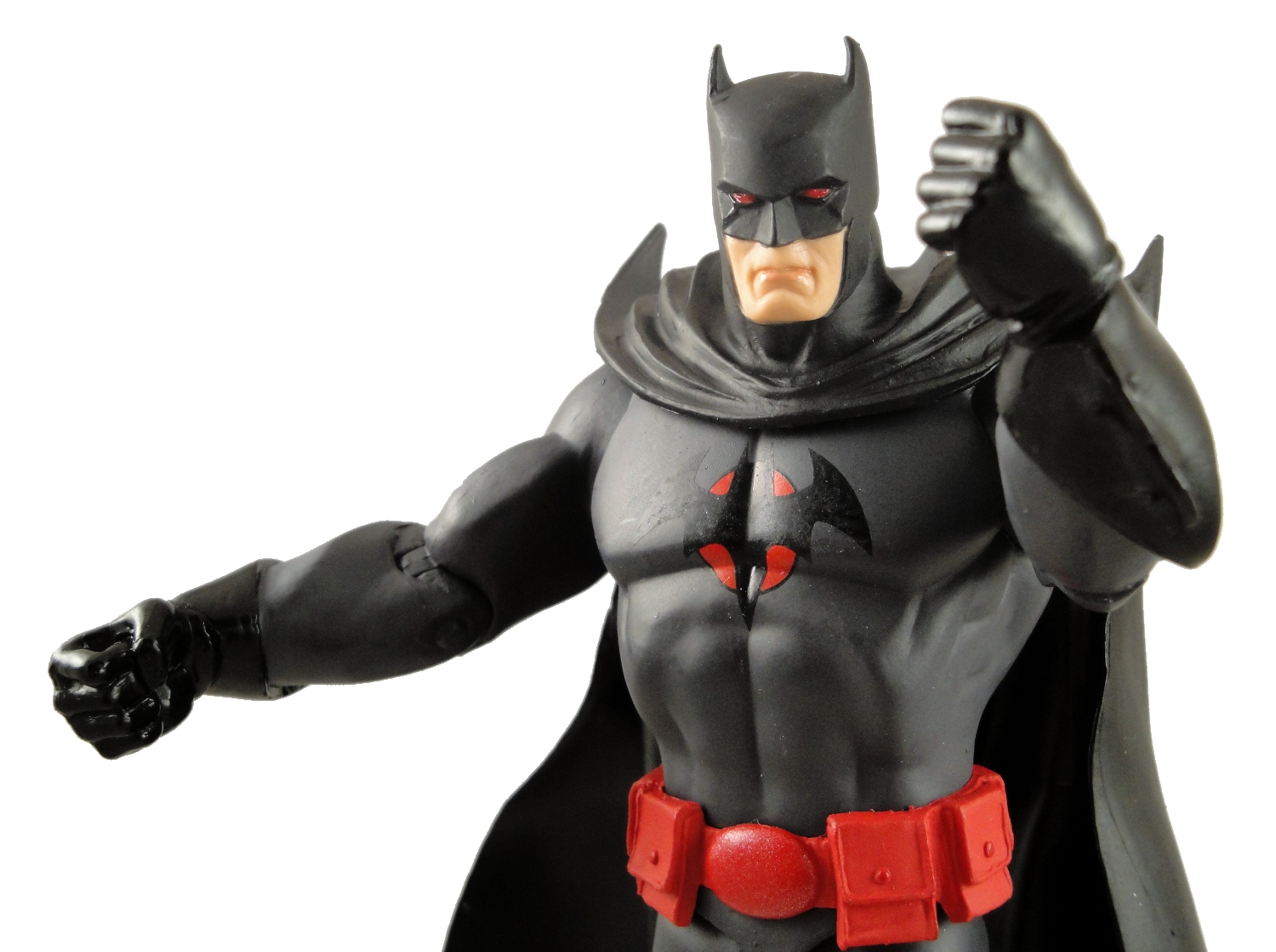 While he looked great in the package, this Flashpoint Batman* action figure was quite disappointing once I’d released him and started playing with him. That mistake on the cape, a little splotchy paint, and limited articulation were all survivable issues but the sculpt is just too odd for the toy to be something I can recommend to anyone.