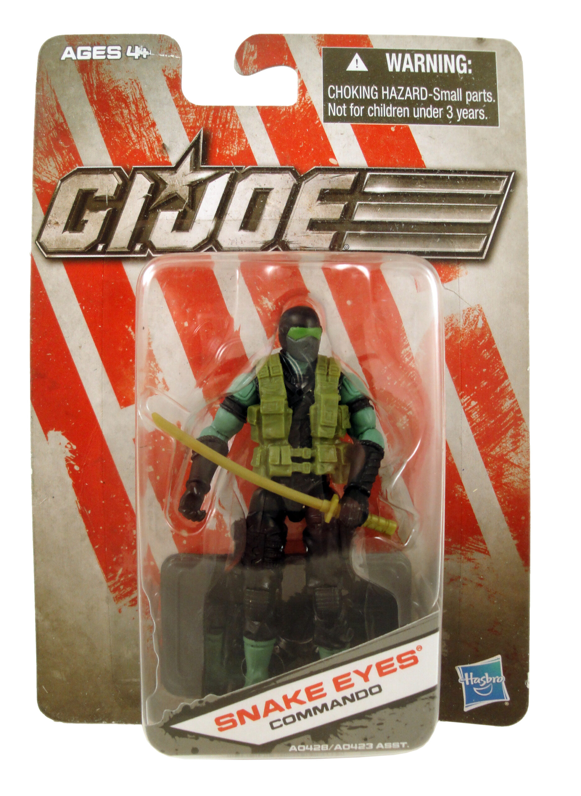 What’s even more stunning is that Hasbro launched the Basic Assortment series (Amazon.com search*) twice! This is the second version of the Basic Assortment Snake Eyes action figure, and if you look at the first version reviewed at That Figures then you’ll see the differences between the two are in coloring only.