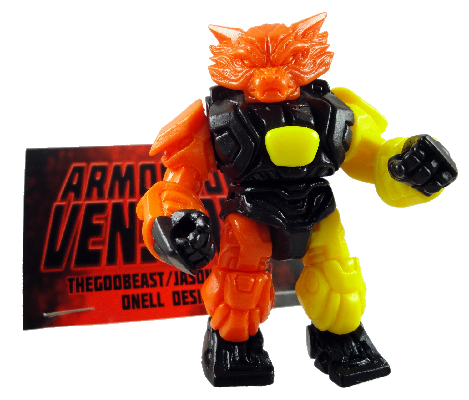 Glyos System (Onell Design) fans used to the PVC figures from the factory will find the handmade nature of the Armorvors a bit strange since the resin joints don’t work the same way. Where the PVC parts can be popped apart and reconfigured quickly and easily while the resin pieces should really be left alone. Even snapping off the wolf head and popping on the robot head is something to do rarely since the resin pins are a bit more fragile than the production pieces.