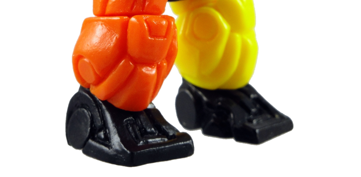 For the limited run of the toys in resin each customer was given the chance to select their own colors, so what we see in the release are a lot of bright, fantastic color schemes that we’re not likely to see if this toy ever makes it to mass production. See this post at the October Toys forum for a look at the various colors. My black/orange/yellow design looks tame compared to the colors in the pictures in that post.