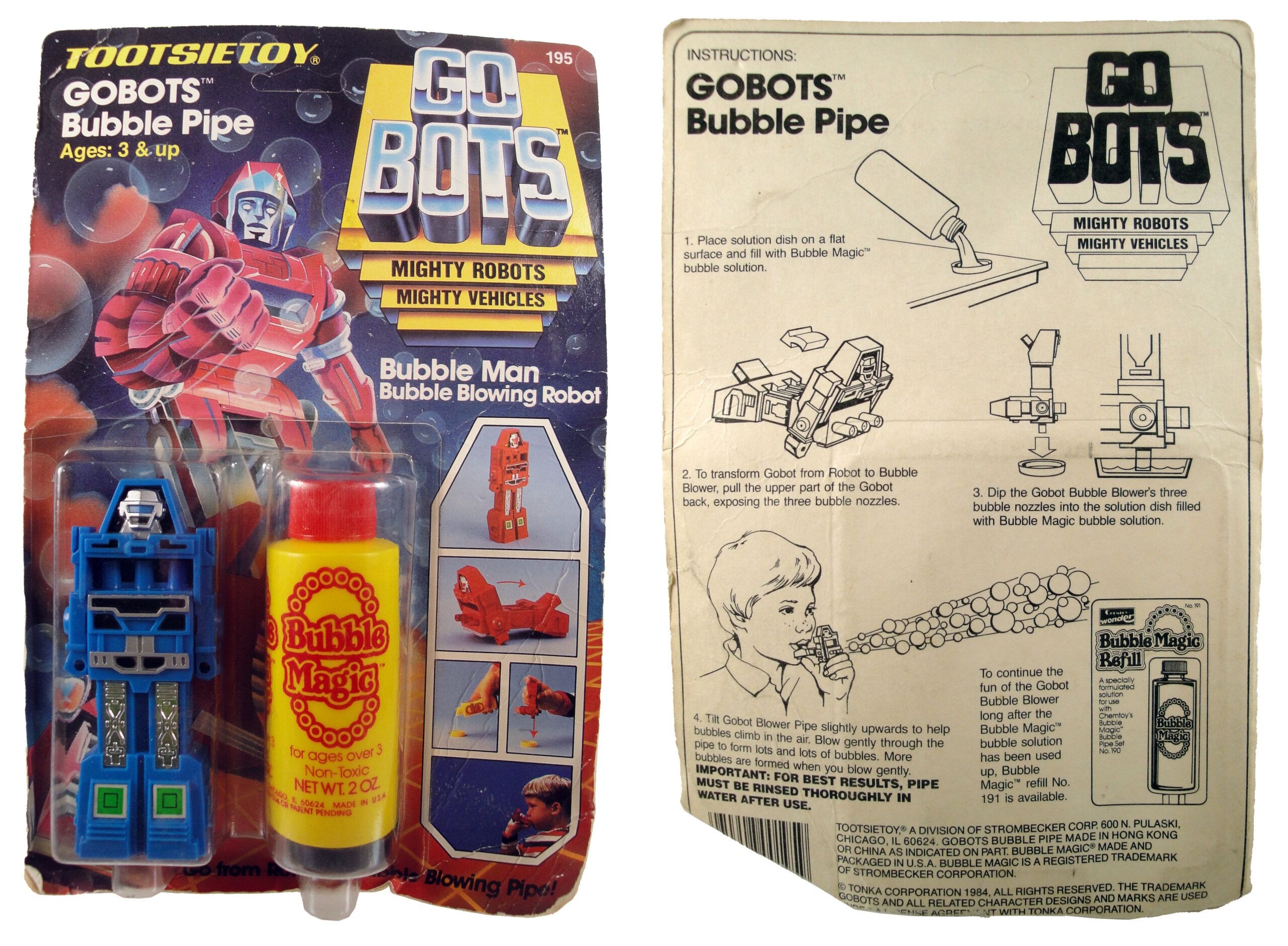 Fans of the Tonka GoBots toys of the eighties (Amazon.com search*) may be scratching their heads in confusion today. “Why,” you’re probably asking, “Would anyone ever invest energy into Bubble Man?”