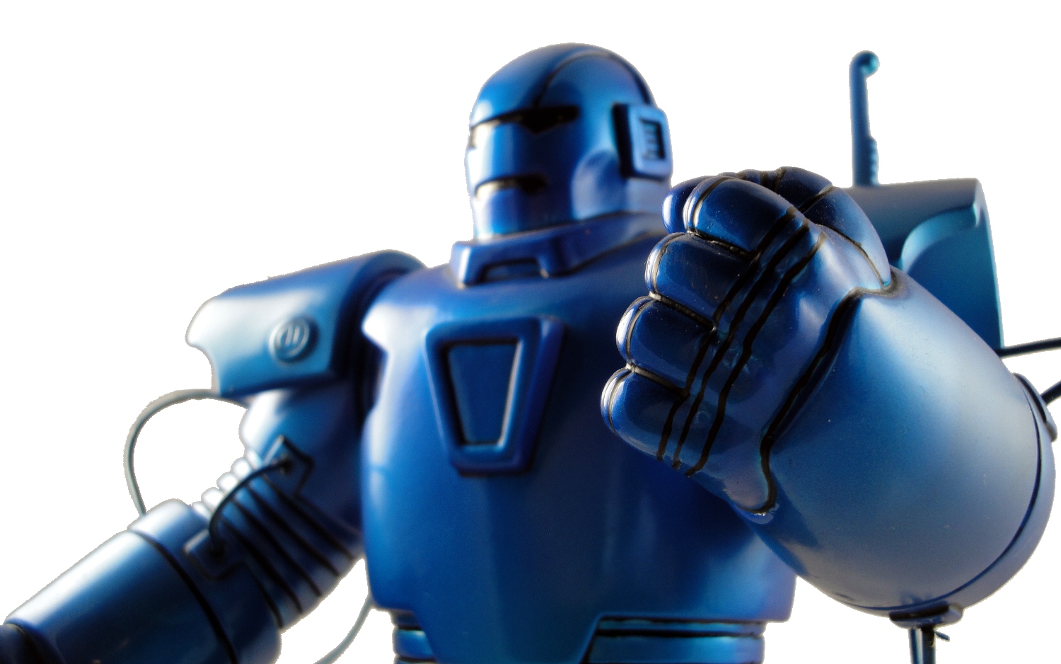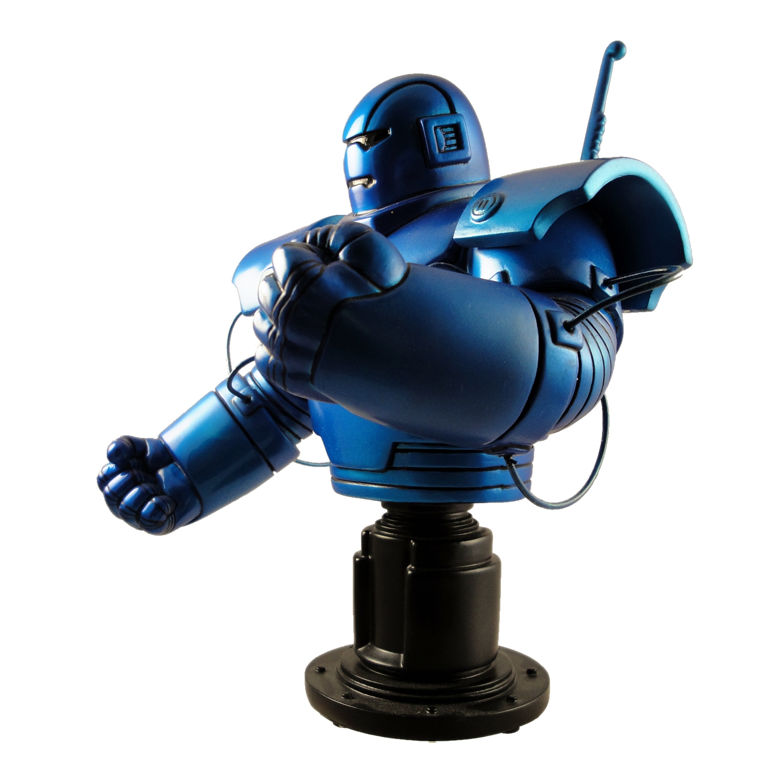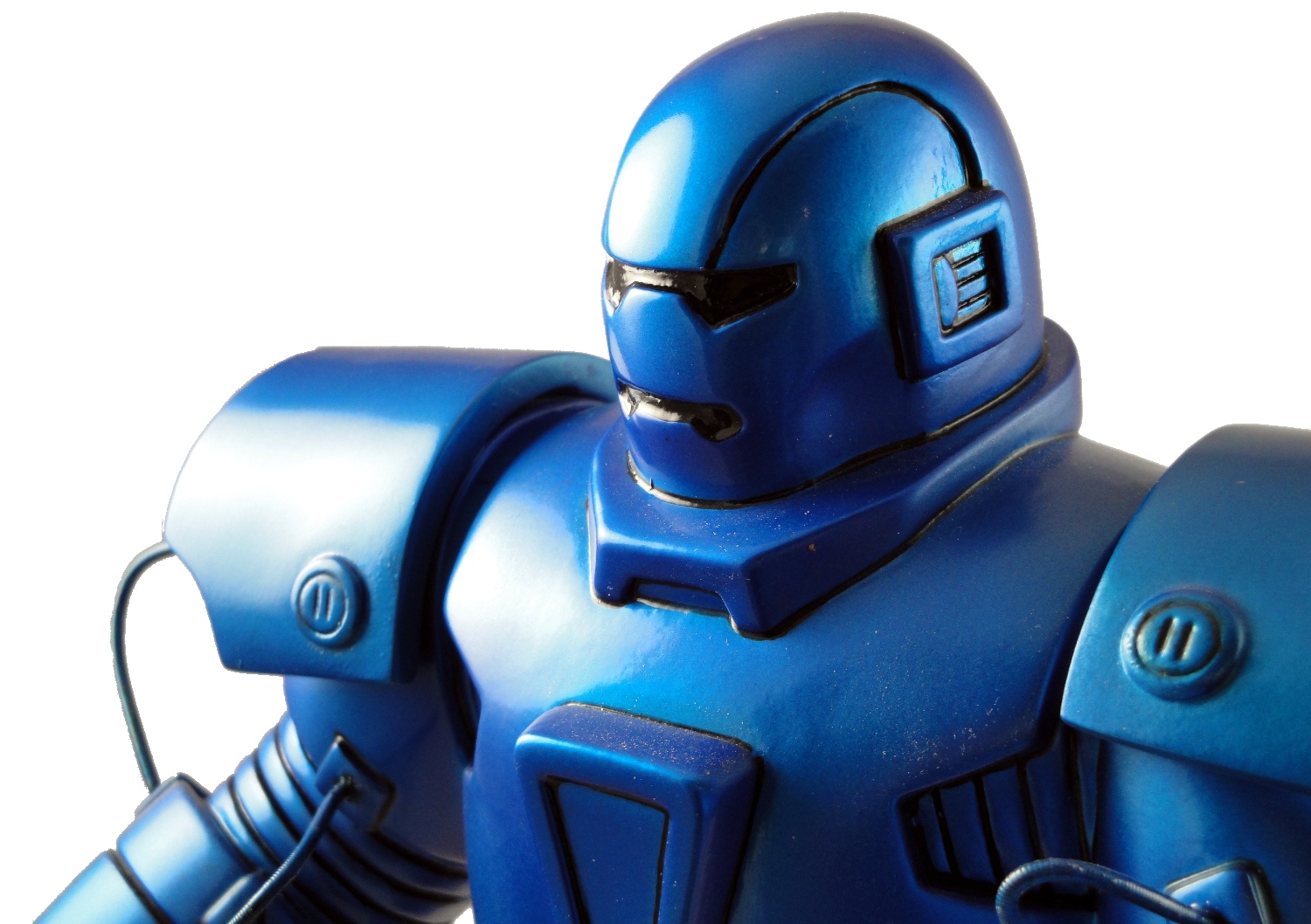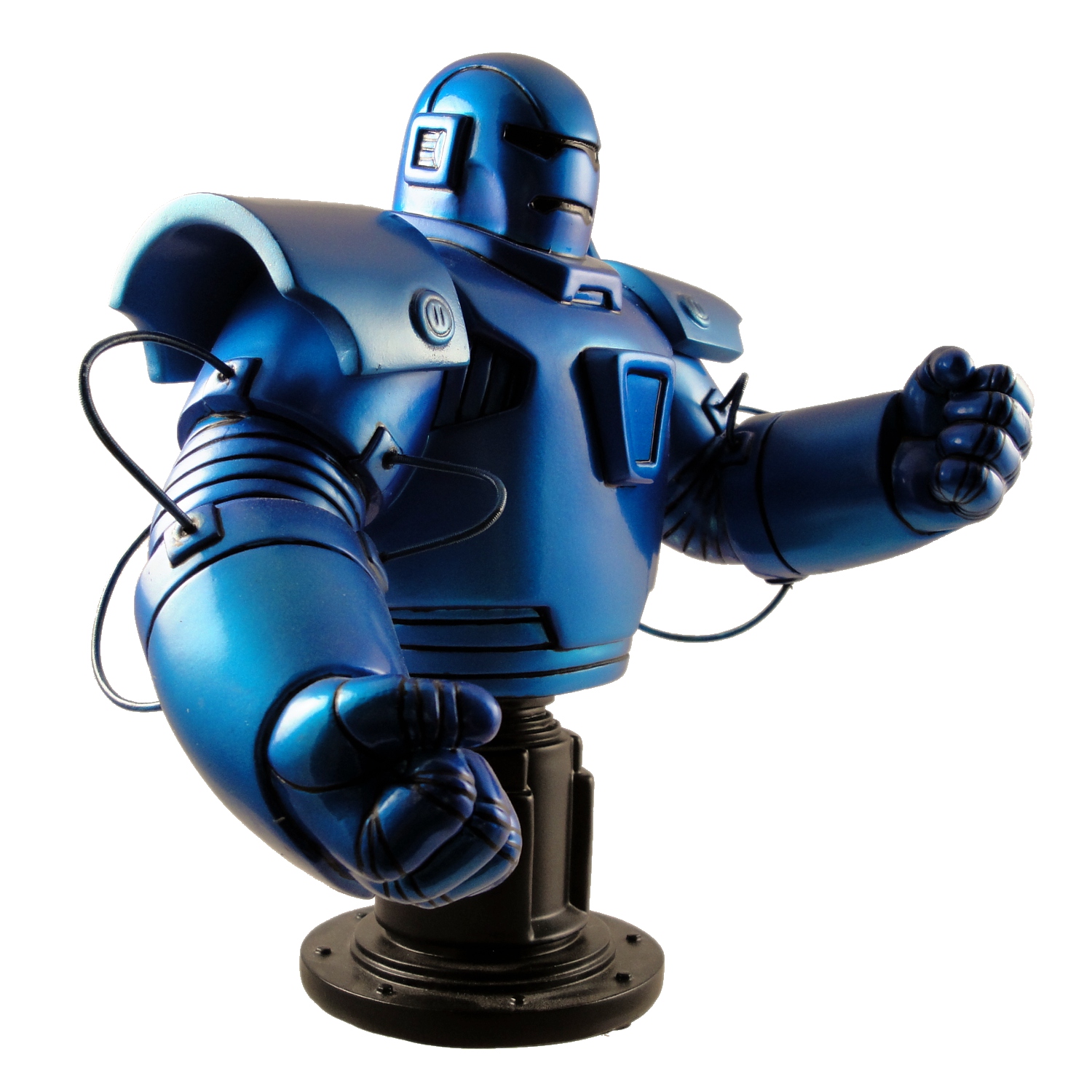 Again, the Iron Monger Mini-Bust* follows the comic artwork so while we get minimal paint applications — the entire statue is a metallic blue with black details — it’s only following the comic and it would be unfair for me to penalize the statue for matching the source material. But even if it’s unfair, it does kinda feel as if the paint isn’t quite as involved as we should expect from a statue. Some airbrushing, maybe in a lighter shade of metallic blue, would have given the statue a little more depth and made it feel more like I got enough of a paint app for a mid-price statue, but the paint does look good and the lighting over the display here at home helps provide enough depth.