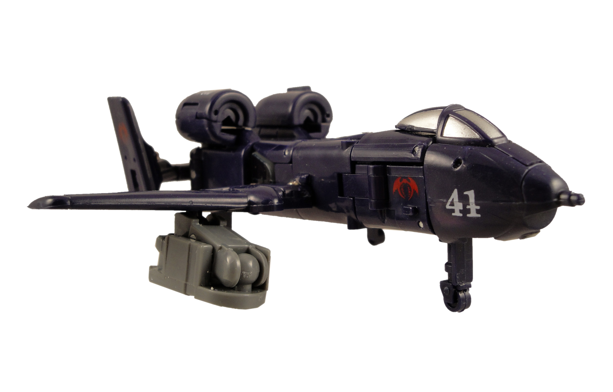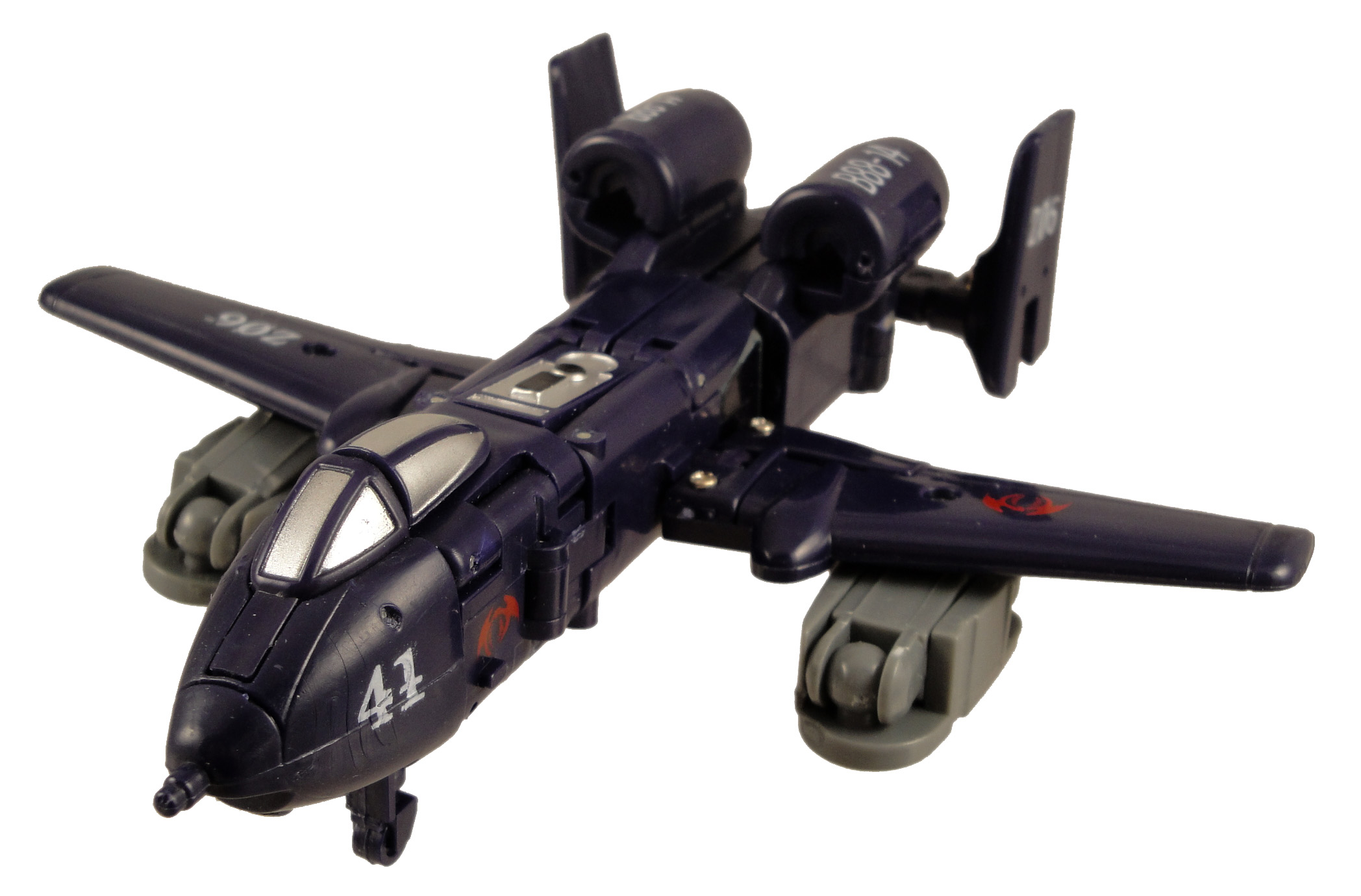 Fans of classic G.I. Joe toys will notice the Rattler-like look of the toy (see yojoe.com). Power Rat is missing that third engine to really give it the Rattler look, but I can forgive that since this isn’t meant to be an exact match and is merely another version of Glider in great colors. And knowing the way the unofficial Transformers market works I wouldn’t be at all surprised to see someone release an upgrade set for this that gives us new arms (with missiles) and the third engine (which could then snap onto one of the arms as a cannon).