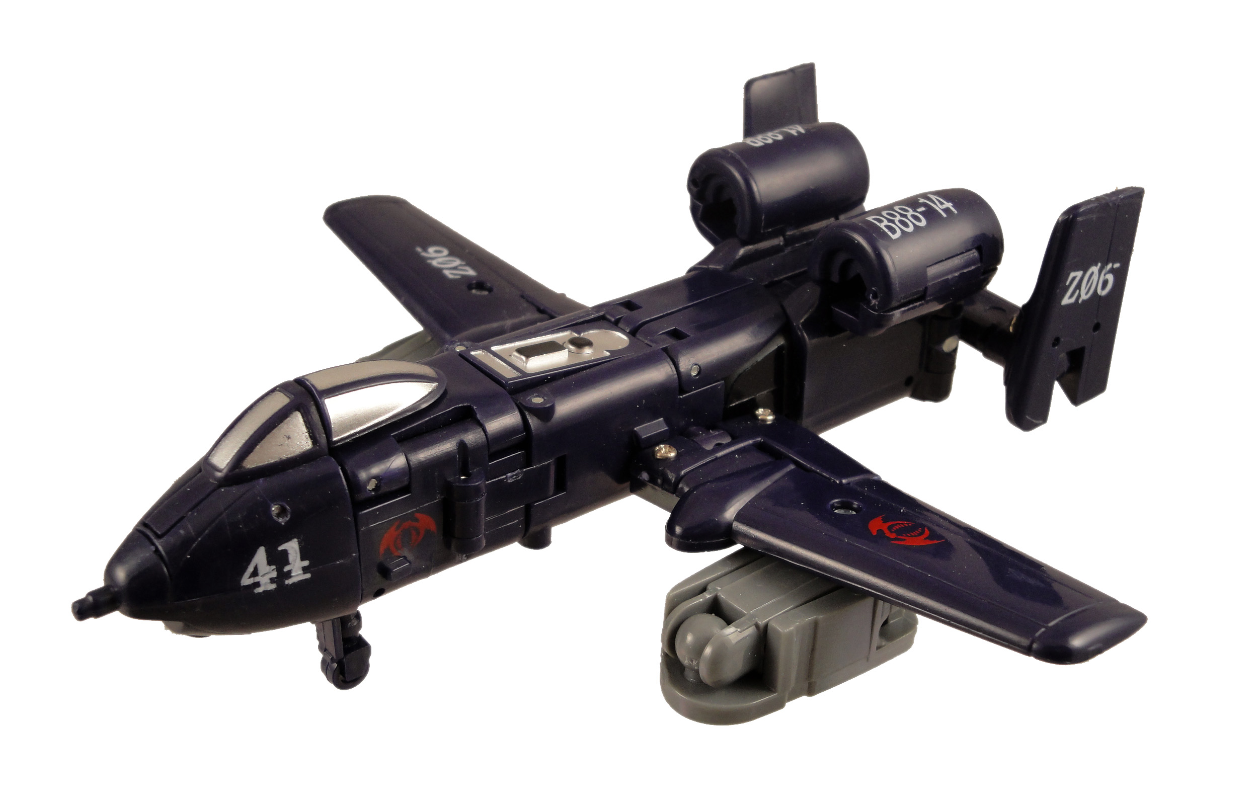 The Power Rat is an exact match of the X Transbots Glider and Wild Child toys (review here) so we’ve already taken a look at the physical design of the toy. This time around we get a dark blue version of the toy with what appear to be tampos applied for the numbers and Cobra symbols. At least I think these are printed on and not decals, but I’m not about to go scratching at the details to see what happens.