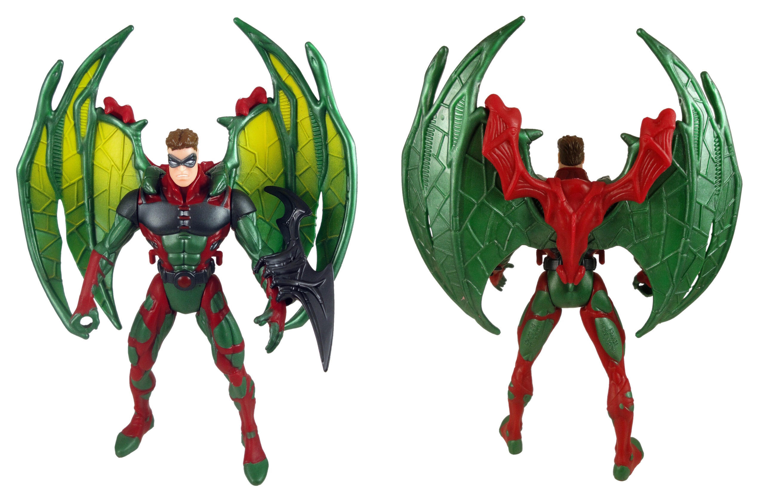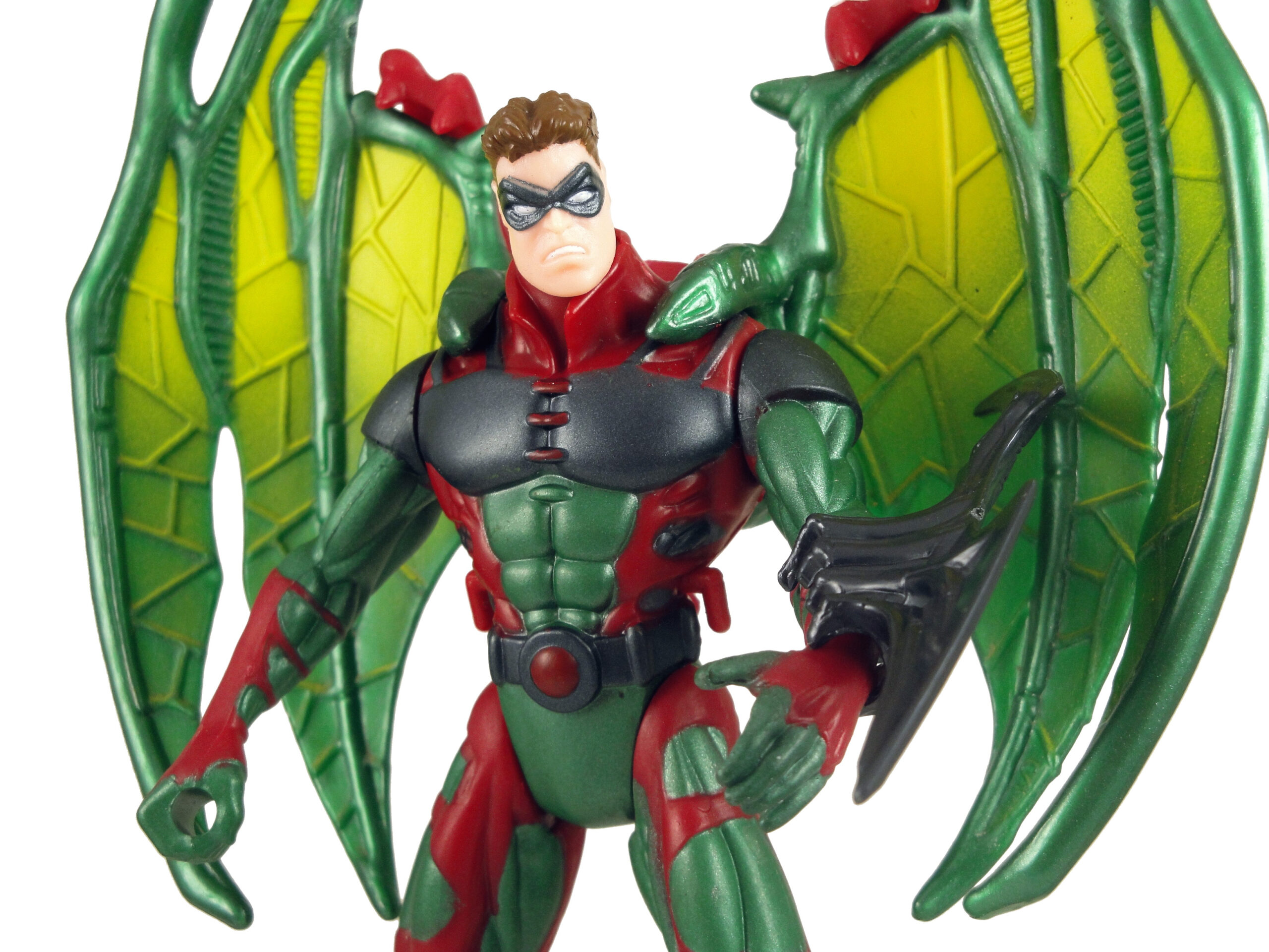 In my opinion the Assault Gauntlet Batman (review here) is clearly the better action figure — hey, it’s Batman! — but Dive Claw Robin has massive and crazy wings and a wonderful color design that makes it a good choice for anyone looking to get into these old lines. There’s no need to start here — and definitely no need to pay more than $15 or so — but if you do find yourself chasing down the old Legends of Batman and Legends of the Dark Knight toys (Amazon.com search*) then give this guy a try. He looks good displayed with others in the two lines.
