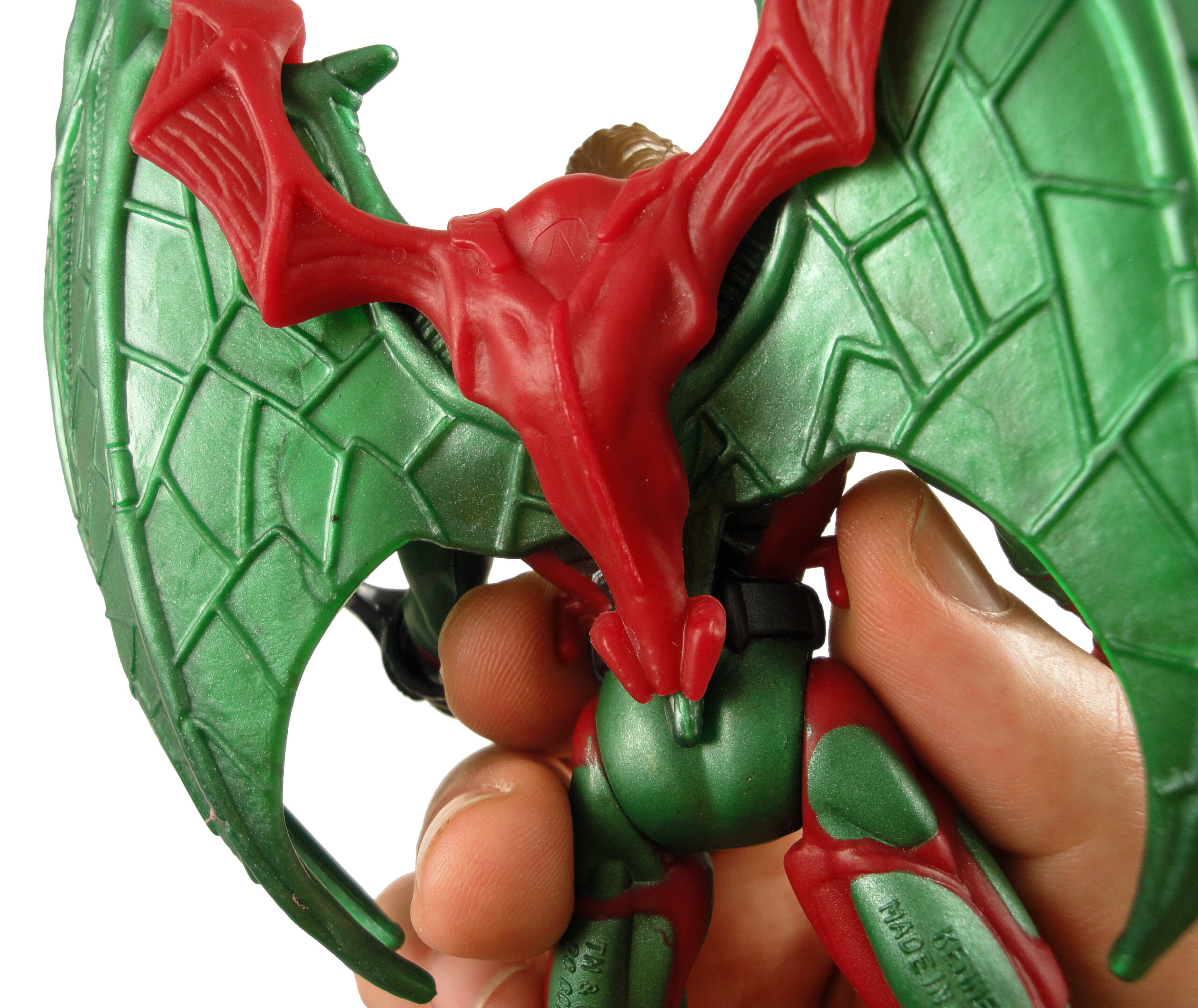 These may not be fairly typical Robin colors, but the paint choices on Dive Claw Robin are fantastic and that spray on those giant wings is my absolute favorite part of the overall color scheme. The paint’s acceptable work in general, but even slightly sloppy spots cannot harm my love for the greens, grays, and dark maroon of the figure. Yay, Kenner, for such a great color design on Robin.