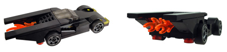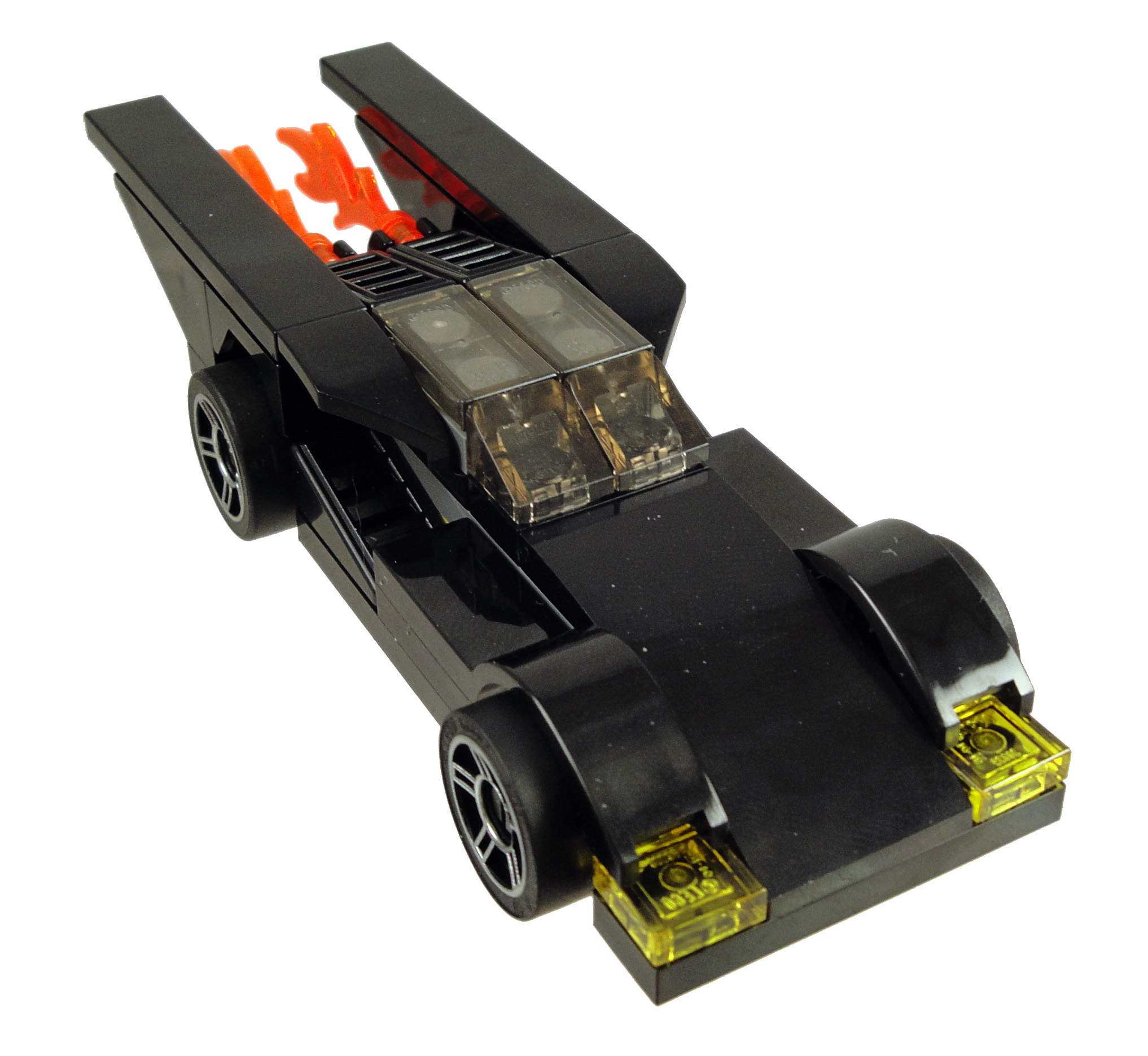 It may not be as fast as the various Hot Wheels Batmobiles on the shelf, but the wheels on this LEGO Batmobile spin wonderfully and the toy races nicely across the floor. And considering the low price — these were under $5 at Target over Christmas — the car was a great buy for its size and the low complexity of the design. And yes, those are rubber tires on the Batmobile.