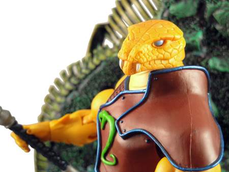 - Armor – Two different armor designs that fit on over the torsos . . . and can be removed to design other snakes or to armor other Masters of the Universe Classics action figures. And since the armor not only changes the look of the base bodies but also adds color to the toys, I’m thinking the armor is the most important of the accessories included in the set.