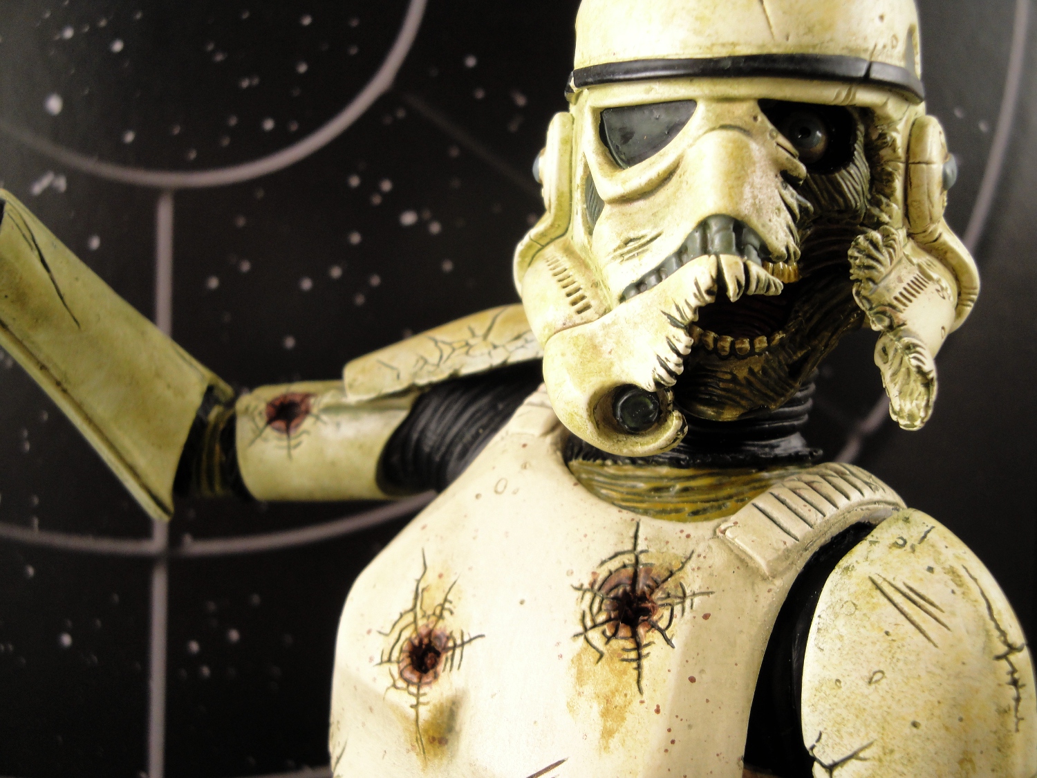 And it’s not just the armor that looks great. That fleshy face, the hole in the armor’s torso, and the tear in the left arm all show meaty and nasty paint applications that help make this a statue that just about any Stormtrooper fan should own. I understand that the idea of zombie Stormtroopers bothers some purists, but I think that getting a close look at the statue will change most minds.
