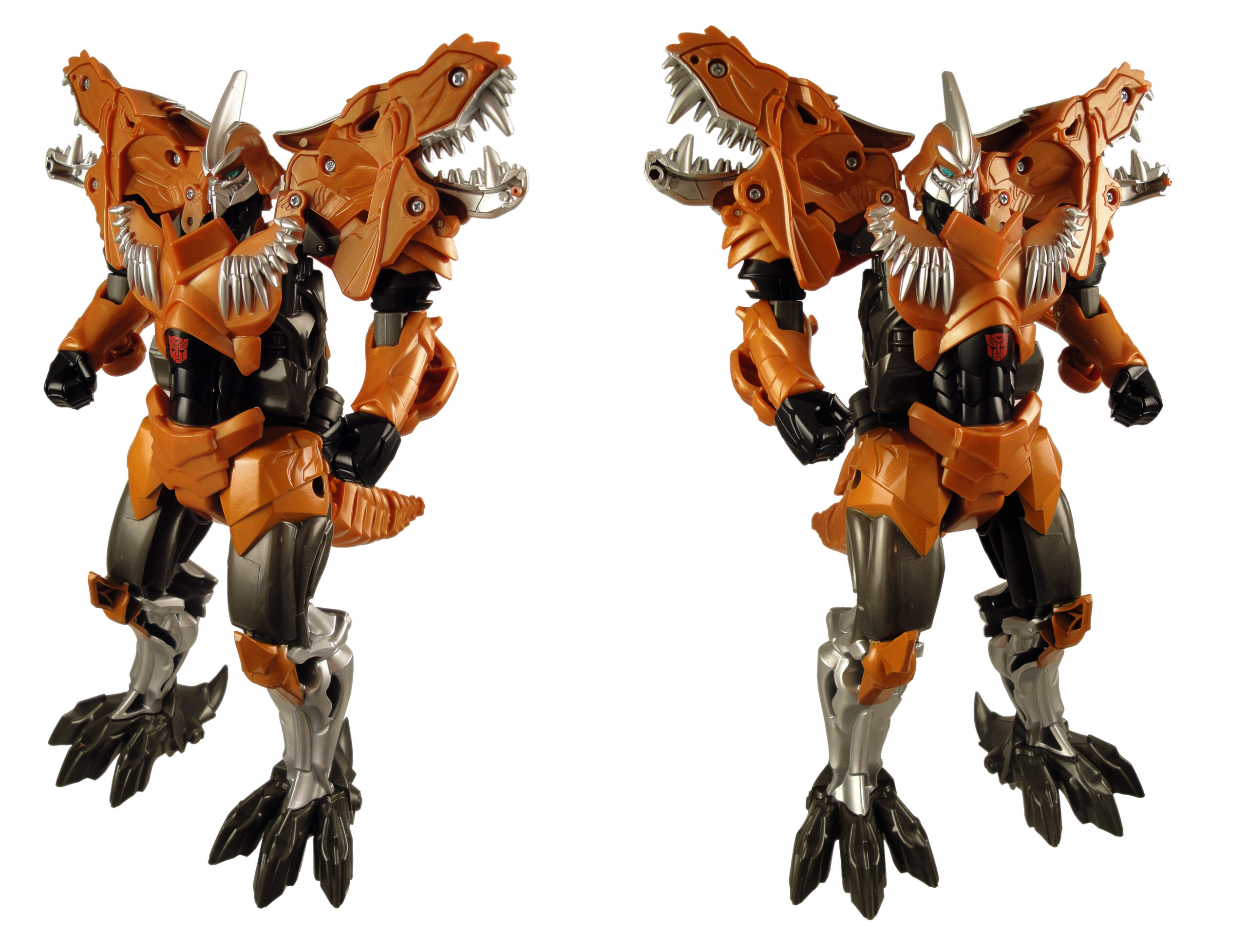 And speaking of the chest, the toy’s chest is flopping and ready to snap when the toy’s in dinosaur mode. That chunk of plastic just hangs there, waiting to get caught on something and ripped right off. It’s not a major flaw, but the instructions, chest, and stiff spinning mechanism take a brilliant design and bring it down to Earth a bit. But with some work Hasbro can perfect the process, and I suspect that if they apply more brainpower to this auto-transformation sequence it’s only going to get better.