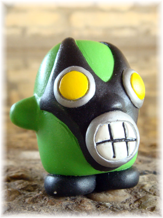Are you sick of reading reviews of short-run, hand-cast and hand-painted resin toys? I hope not, because today we’re taking a look at Troy Stith’s first resin toy, Virulentos. (Check out Troy’s blog right here.) This tiny guy, limited to a run of 4 pieces, may very well be the first of the miniature, non-articulated resin toys to really impress me.