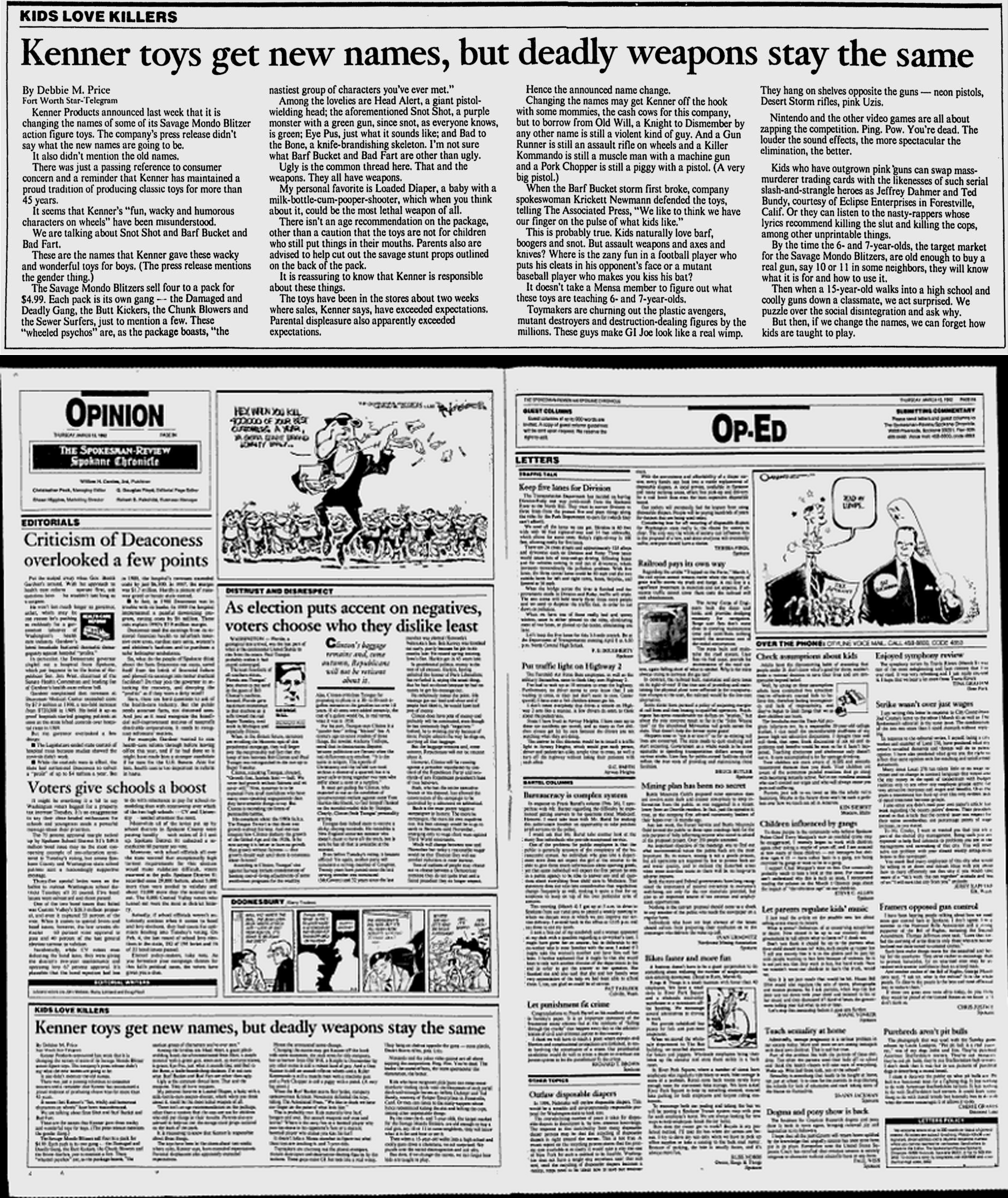 I stumbled across this 1992 newspaper article while exploring the online Google archives, and I immediately realized I didn’t know enough about the Savage Mondo Blitzers toyline from Kenner to really understand what I was reading.