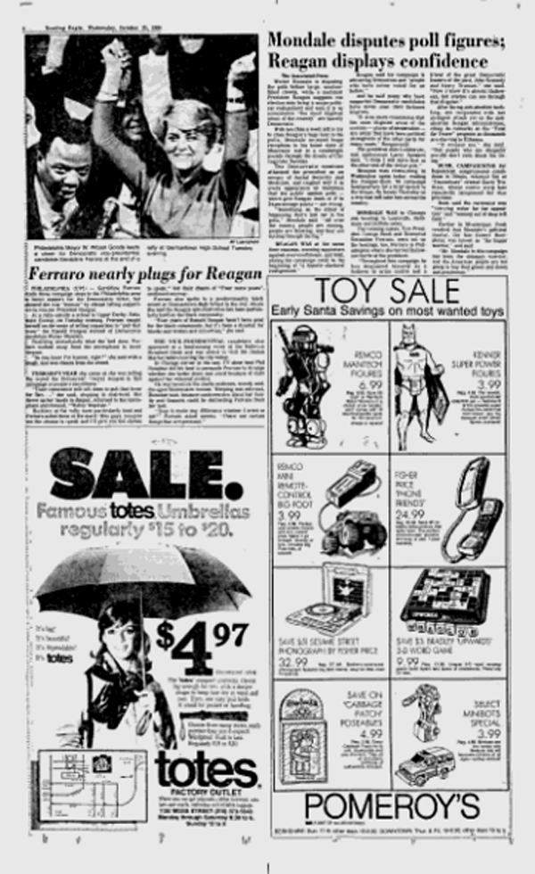 Well, today we get a special Select treat in the form of an old newspaper advertisement. This small ad from the Reading Eagle, dated October 31 of 1984, shows us the Select robots on sale. I hadn’t realized they were so pricey next to Transformers minibots; I’m betting it was the metal used in the toys that drove the price up a bit. Anyway, price doesn’t matter since this ad’s over three decades old and Convertors cost more than $4 these days.