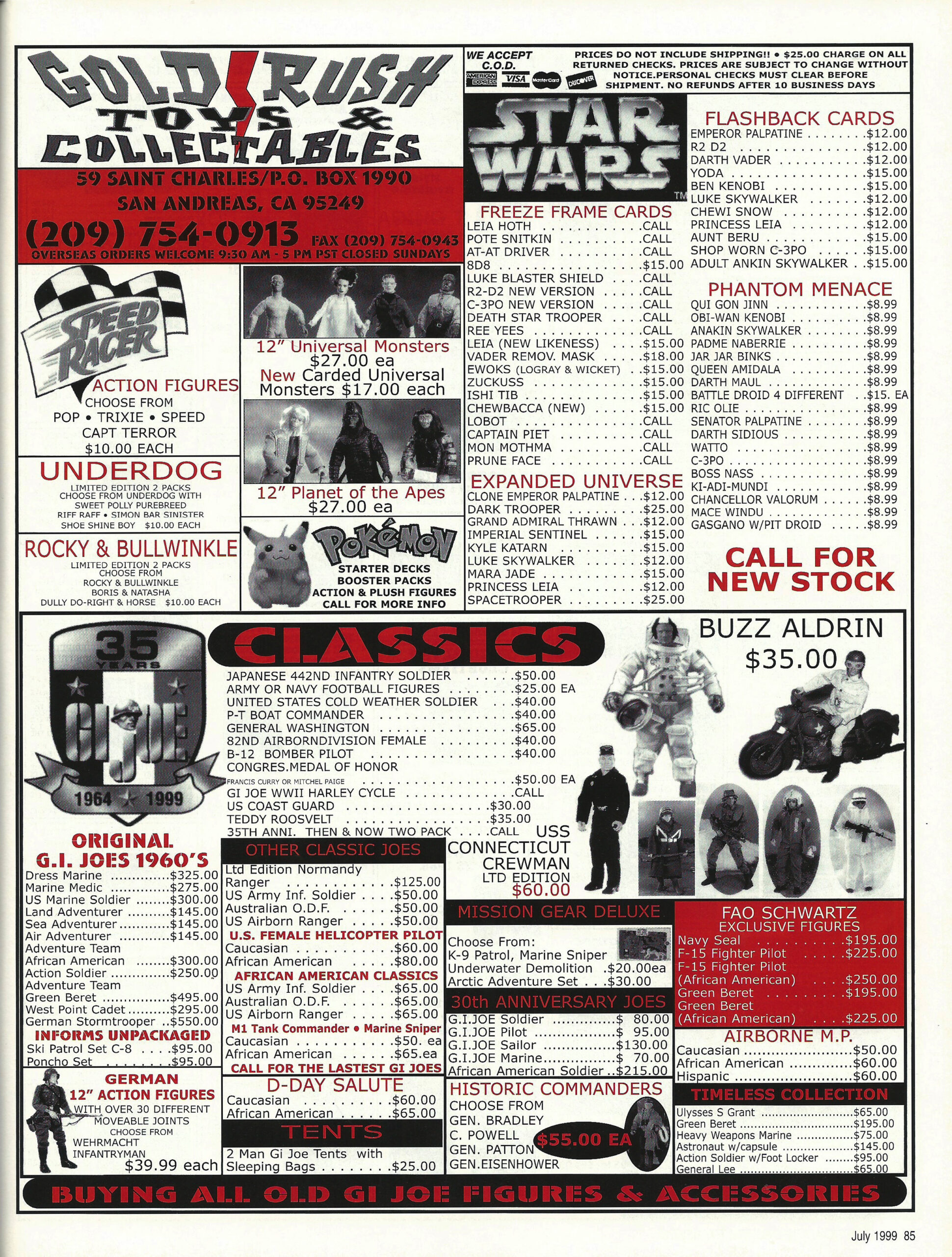 If you ever needed proof that action figures aren’t exactly the best investment for your future then this ad from the July, 1999 issue of Lee’s Action Figure News and Toy Review (Amazon.com search*) should be quite educational. If you compare the listed price of the 1998 Star Wars Expanded Universe action figures to what you can expect to pay today you’ll see that the costs are effectively unchanged. You can find some of these for less today, some for a little more today, but overall it’s basically a wash.