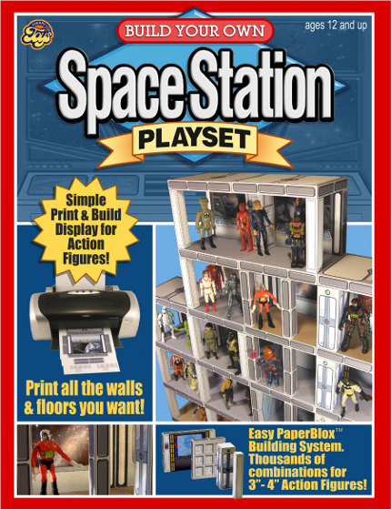 Fans of 3.75-inch scale action figures looking for a new display will want to take a look at How to Build Your Own Space Station Playset for your Action Figures an eBook available from Sherry Lou Toys (website, Twitter). You can grab the book either as a downloadable file or on CD. Looks like a great display for anyone who has the time and skills to cut, fold, and glue paper.