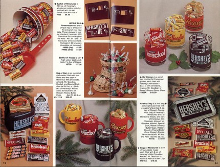Now do people even make holiday catalogs like this anymore? I know I sometimes get some very simple catalogs in the mail from online retailers, but I can’t remember the last time I saw something so specific and wonderful as this Hershey’s catalog. Has the internet completely destroyed catalogs forever? It would be a shame if that were true and we couldn’t look forward to nifty catalogs in our mail every now and then.