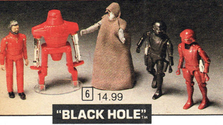 I’ve shared some advertisements for Disney’s Black Hole action figures before (1980 magazine ad, 1980 newspaper ad), but those are nothing compared to the 1980 catalog page that is posted at Plaid Stallions. $30 for all 10 of the figures shown in the catalog? I’ll pay that!