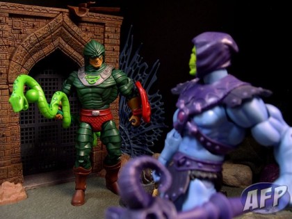 Haven’t had enough of the Masters of the Universe Classics King Hssss yet? Well, see this post at ActionFigurePics for some great photos of the toy by Sandman21xxi. Great pics, especially the ones of the snake-torsoed figure coming out of the darkness.