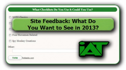 Visit the new poll at It’s All True and help the guys plan their next year of posts at itsalltrue.net. They’re looking on reader input on what toys should be reviewed, what sorts of features should be run, and asking everyone on how — or if! — the various guides they have on the site are used.