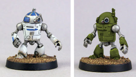 I know nothing about the Counterblast miniatures game, but my knowledge of the game means nothing as long as there are great custom concepts like these two painted samples of the game’s HLPR Bot miniature. I love these designs!