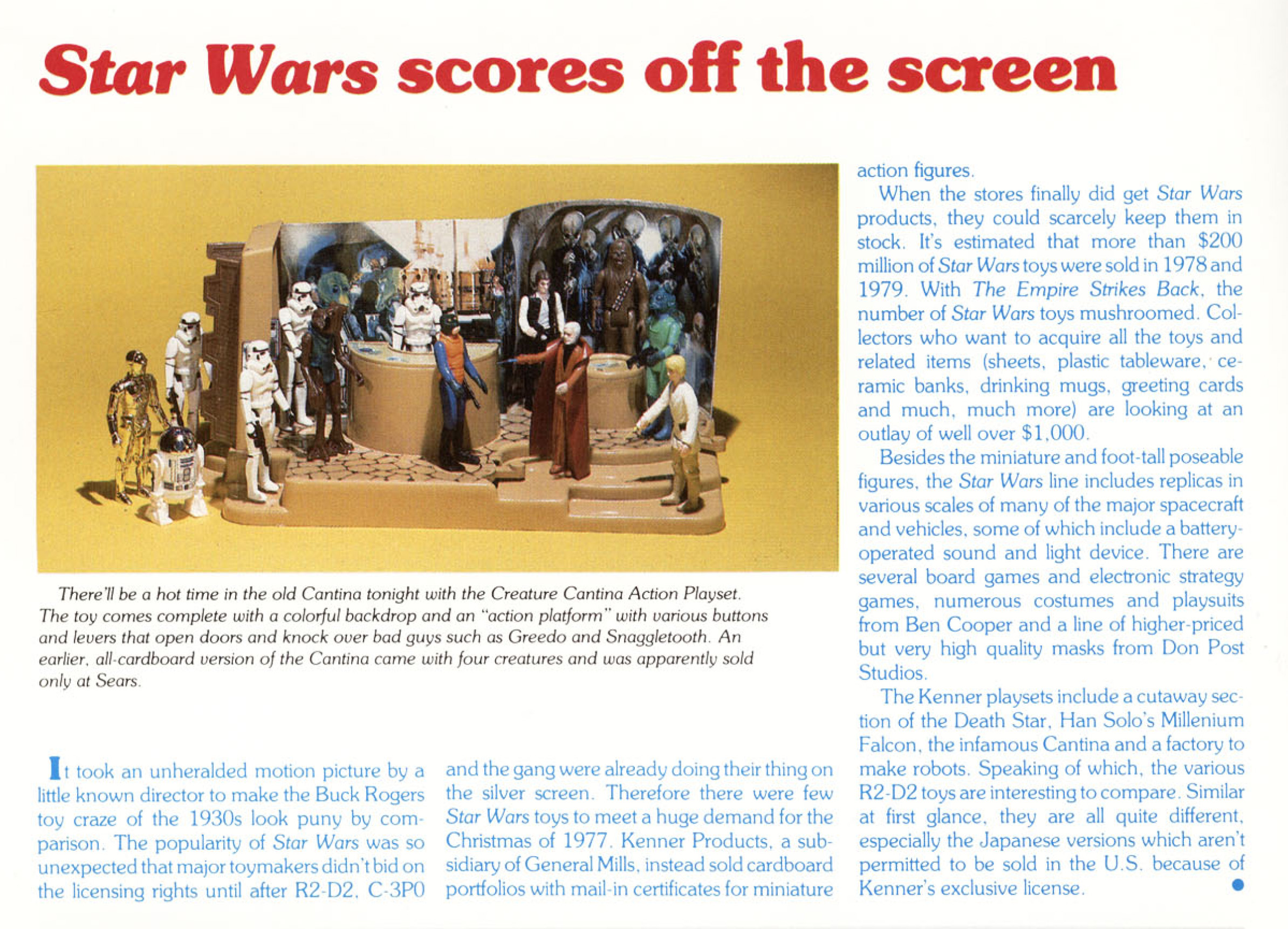 Published in 1980 and written by Steven Sansweet, the Starlog Photo Guidebook: Science Fiction Toys & Models, Volume 01 is available in PDF at archive.org. The 36-page magazine is pretty cool for action figure fans, even if the majority of the work is devoted to tin toys. Still, how can you resist taking a peek at things once you see this small sample of the Star Wars section?