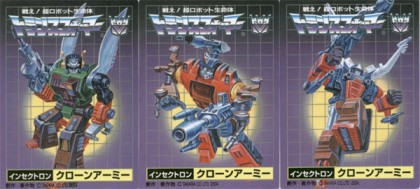 They’re red, black, and even have some other colors mixed in, and they’re wonderfully reviewed at TF-1 and I have to admit that this Insecticons Clone Army 3-pack set would be a fantastic addition to my collection . . . if it was available at a reasonable price. I need to keep in mind just how much the prices spike on these special sets the next time one is released and I say “Hmmmm, that’s kinda expensive.” The prices on these things always keep climbing.